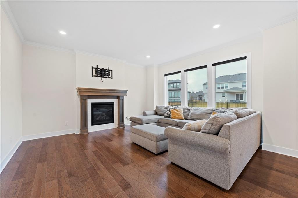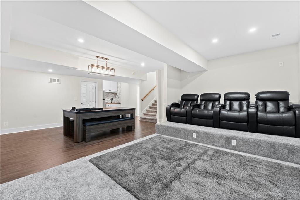 Stunning 6-bedroom, 5-bathroom home with ample space and luxurious features throughout. The main level offers a versatile guest bedroom or office, while the second floor boasts 4 additional bedrooms, including a spacious primary suite with a large bathroom and oversized closet. The finished basement is an entertainer's dream, featuring a theatre room, wet bar, home gym, and a bonus bedroom with a full bath. Outdoors, enjoy the screened-in patio, large concrete patio with built-in fire pit, perfect for gatherings. Centrally located with easy highway access and just a short walk or bike ride to nearby shopping. The Reserve at Woodside Ridge offers a convenient location to highway access, shopping centers, and the Rock Island Trail. The amenities complex features: a club house, pool, pickleball court, hammock garden, and playground area. The HOA dues also include trash, recycling, and paved walking trails.