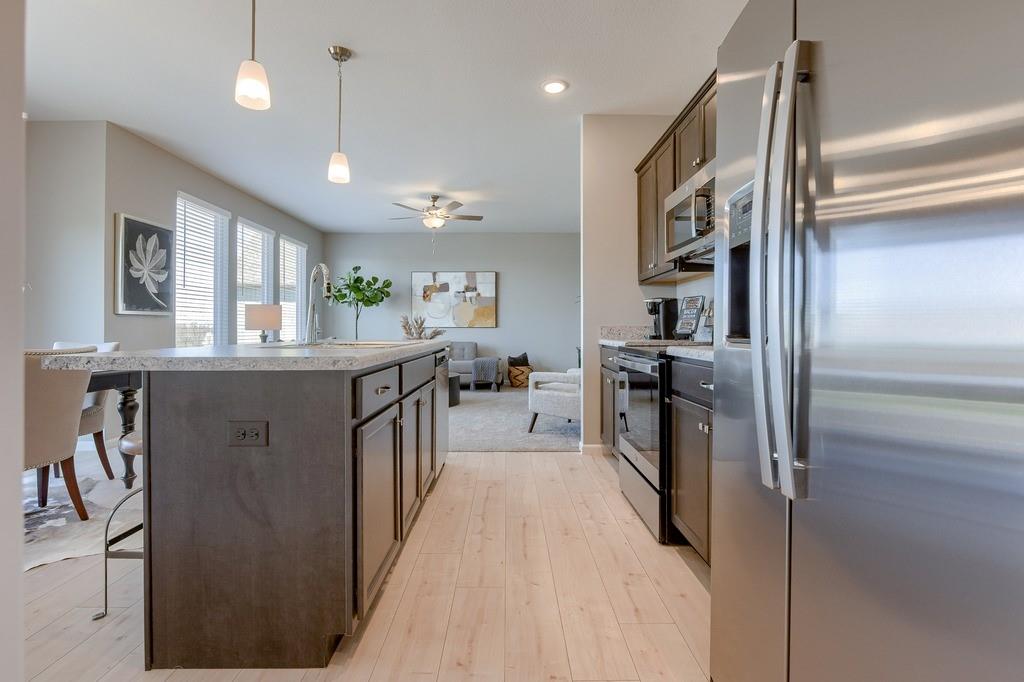 Welcome to the Kinley — a beautifully crafted 3-bedroom, 2-bath home. This thoughtfully designed 2 Story floor plan offers both comfort and flexibility, featuring a full basement, perfect for storage, recreation, or future finish. At the heart of the home is an inviting open-concept layout connecting the kitchen, living, and dining areas—ideal for everyday living and entertaining. The kitchen features sleek quartz countertops, stainless steel appliances, and a large island, blending modern design with everyday functionality. HOME IS UNDER CONSTRUCTION.