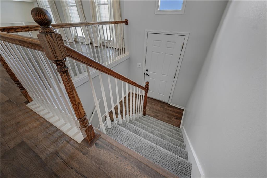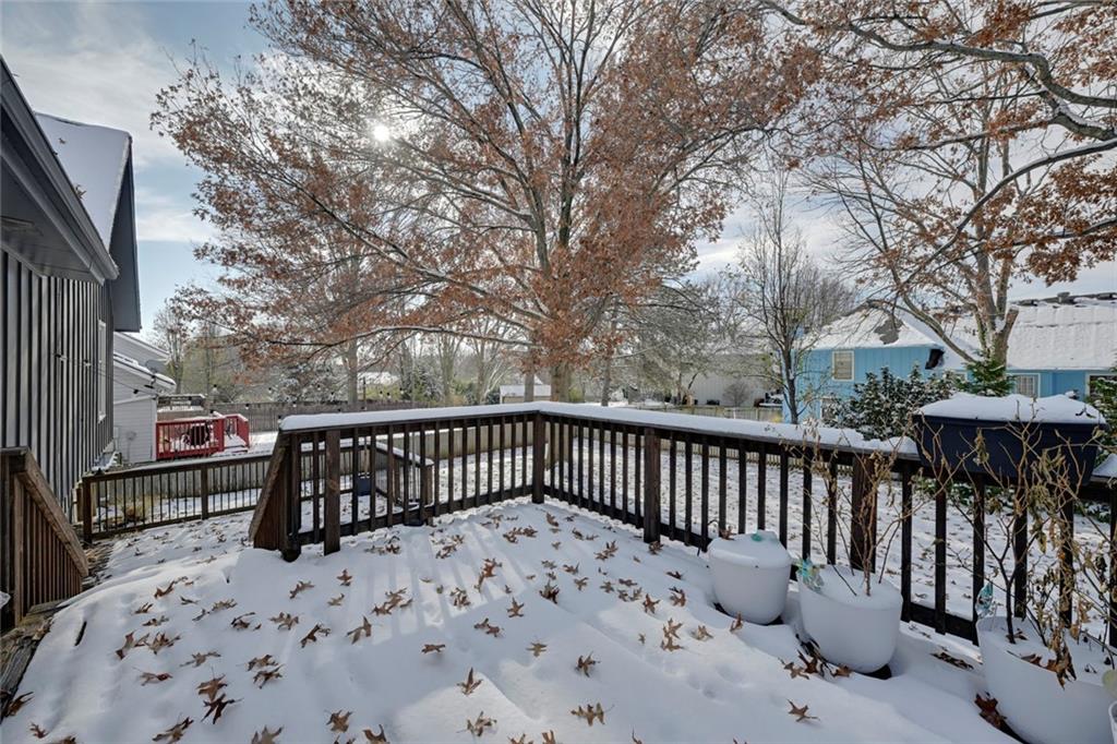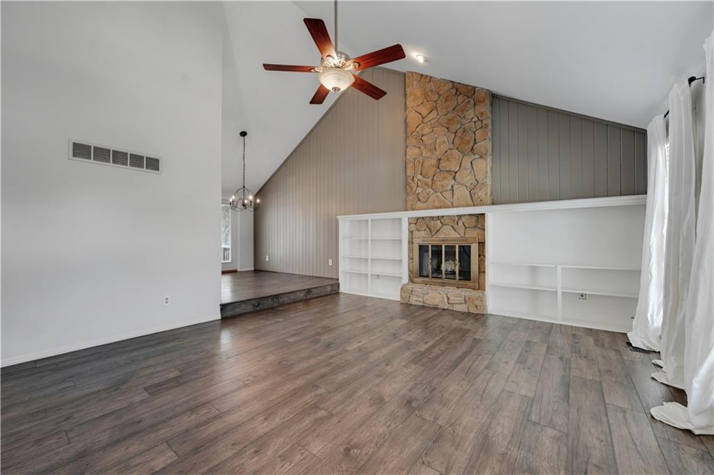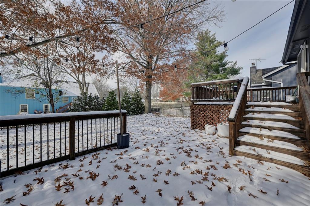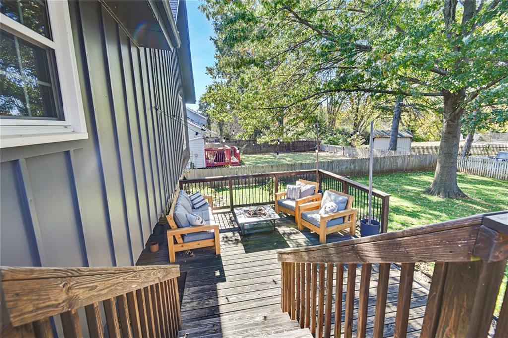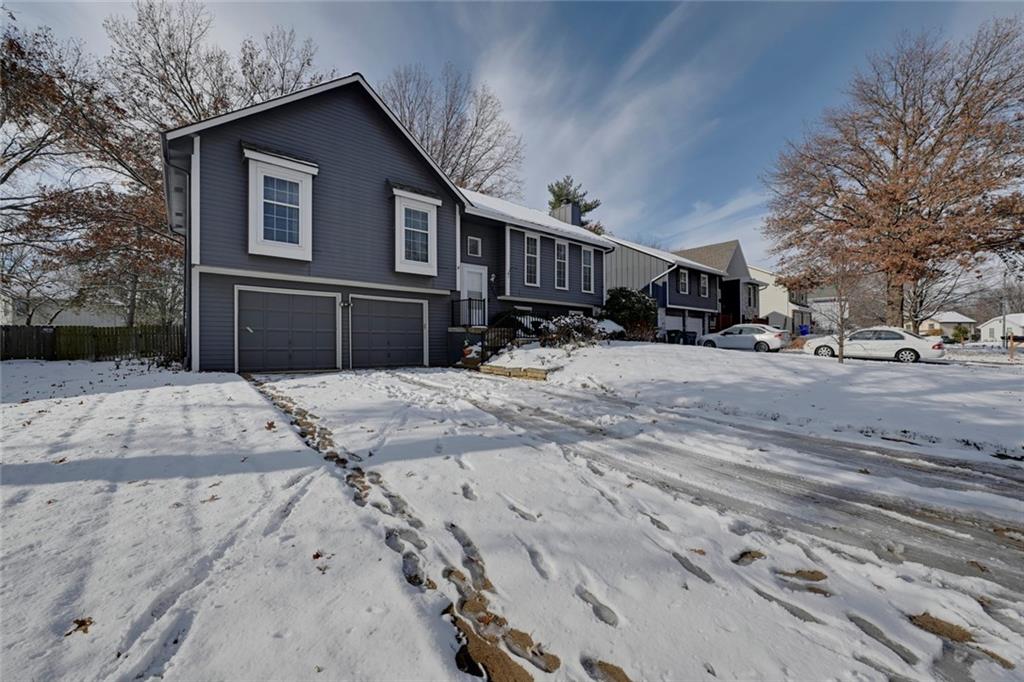 Welcome to 12838 Navaho Drive—perfectly positioned in a highly desirable Olathe location with quick access to nearby parks, shopping, restaurants, and major highways. Step inside to a warm and inviting main floor featuring a beautiful stone fireplace, built-in shelving, updated light fixtures, and sun-filled living and dining spaces. The kitchen impresses with stainless steel appliances, updated countertops, a pantry, and a window over the sink that frames a lovely view of the backyard. The dining area sits under a charming chandelier and opens directly to the multi-tiered deck, creating effortless indoor-outdoor flow—perfect for hosting gatherings, grilling, or enjoying fall evenings. Upstairs, the primary suite offers fresh paint, a large closet, and an attached bath with new flooring and a thoughtful layout separating the vanity area from the shower and toilet. The secondary bedrooms each feature ceiling fans and generous closets. The deep garage provides room for large vehicles plus extra storage. Head downstairs to a bonus living area complete with a bar, ideal for game nights or movie weekends. The stair carpet is new as of November of 2025. The basement also includes a large laundry area and a convenient half bath. Located in a fantastic neighborhood with top-rated schools, this home combines comfort, functionality, and unbeatable access to Olathe amenities. Just minutes from Black Bob Park, Heritage Park, the 151st Street shopping corridor, and easy connections to 69 Hwy, K-10, and I-35, this home offers convenience in every direction. A must-see!
