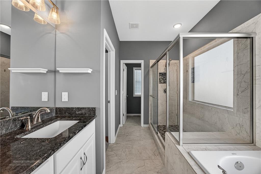 Welcome home to this spacious 4-bedroom, 3-bathroom property in the Basehor-Linwood School District. Enter into an inviting open-concept layout and abundant natural light throughout. The kitchen features granite countertops, stainless steel appliances, a pantry, and generous cabinet space—flowing seamlessly to a large deck that’s perfect for grilling or relaxing. The main level also includes the first living space, convenient laundry access, and a primary suite complete with a walk-in closet, double-sink vanity, and separate tub and shower. Downstairs, a second living area provides flexibility for entertaining, work, or play. A 3-car garage adds valuable storage and room for hobbies. Located just blocks from the Basehor Community Library and minutes from highway access, this home blends everyday convenience and updated living.