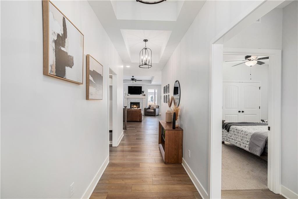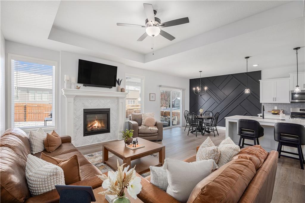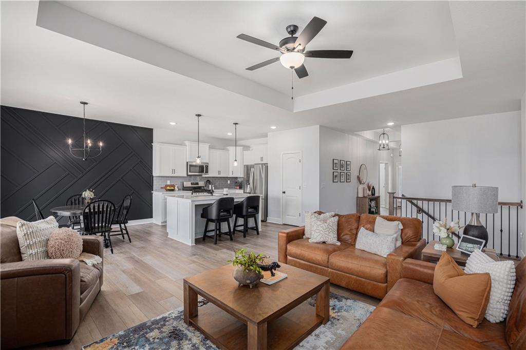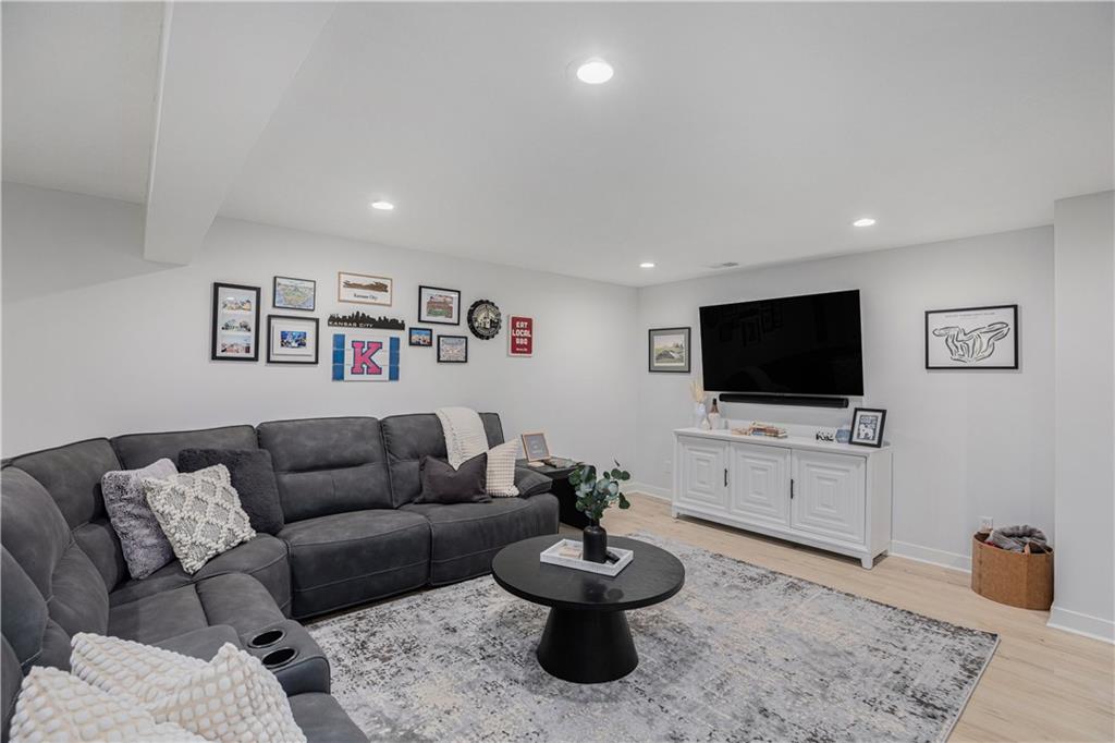 Why settle for new when you can embrace the elegance of this beautifully upgraded home, built in 2022. Step inside to discover a light, bright, and airy ambiance that creates an irresistible invitation to unwind and relax. This stunning residence features 4 spacious bedrooms and 3 full baths, complemented by an attached two-car garage and a fully fenced, beautifully landscaped yard that offers both privacy and curb appeal. As you enter through the front door, you'll be greeted by soaring high ceilings, gleaming wood floors, and an open floor plan that seamlessly flows throughout. The heart of the home is the expansive white kitchen, showcasing luxurious quartz countertops and a chic grey tile backsplash. The oversized island provides additional seating, while a walk-in pantry, gas stove, and stainless steel appliances complete this chef’s paradise. The kitchen elegantly opens to a sunlit living room adorned with a tiled fireplace, floor-to-ceiling windows, and a charming dining area featuring an accent wall that adds character and warmth. Your primary suite is conveniently located on the main level, offering a generously sized bath with a double vanity, a spacious shower, and a walk-in closet that dreams are made of. Two additional bedrooms and a full bath are also located on the main floor, ensuring comfort and convenience. Don’t forget the thoughtfully designed laundry and mudroom, situated off the primary suite. Venture downstairs to the amazing newly finished lower level, where a cozy family room awaits, complete with a newly installed wet bar, a full bedroom, and an additional bathroom. There’s even an unfinished storage space for all your organizing needs! Step outside to an extended patio surrounded by a privacy fence, making this yard a perfect 10 out of 10. Nestled in the highly sought-after Platte County School District, this home is part of a vibrant community that offers a pool, playground, and scenic trails.