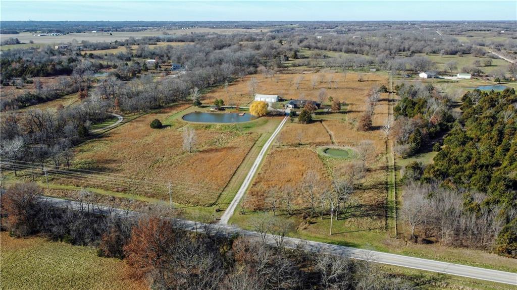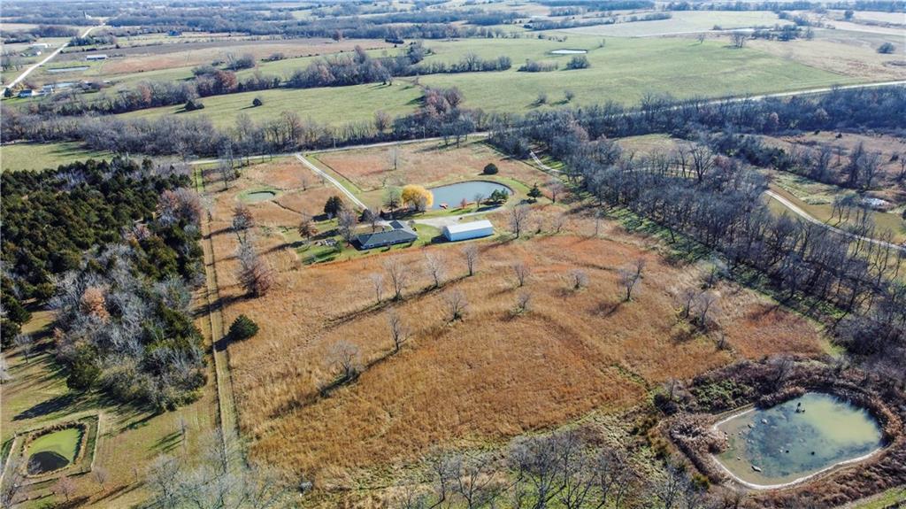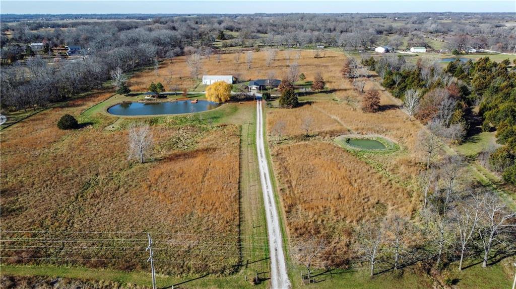 Come see this beautifully maintained 3 bed 2 bath (with a 4th non conforming room) just outside of Pleasant Hill with 19 acres! It has a full 3 bay shop with concrete floors and power and a covered shelter house with power overlooking the pond with dock! Have fun hosting parties or just fishing! NEW ROOF put on house, shop and shelter house in October 2025!! New carpet and window in the primary bedroom along with a new window in the 2nd bedroom. There are native grasses in the fields: Indian and Little Blue Stem, cherry and peach trees near the raised garden beds that have blueberries in them! There is also a fenced animal pen and a cattle waterer. Secondary pond and small shed located in the back pasture. Have backyard parties in the shelter house-there is a horseshoe set and pit! Paddleboat and picnic table also stays with the house! Enjoy paddling around in the pond!