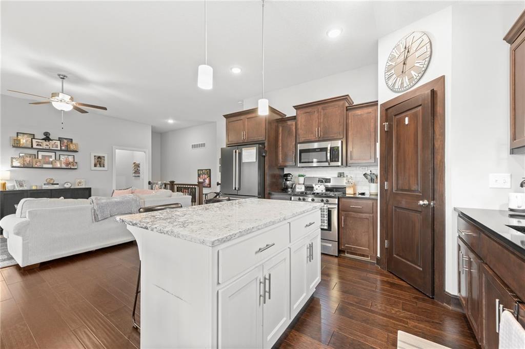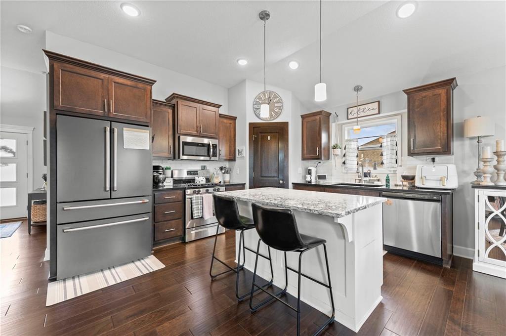 Welcome to your dream home in Copper Ridge. This reverse story and a half brings together space, comfort, and style with four bedrooms, three bathrooms, and a three-car garage across 2,171 square feet of thoughtful design. The main level features an open layout where the kitchen and living room flow together effortlessly. A large island, beautiful details, and a cozy fireplace make the space feel warm and functional. On this level, you will find two bedrooms and two bathrooms, including a primary suite made for unwinding. The lower level adds even more flexibility with two additional bedrooms, a full bath, and a second living area perfect for guests or a home office. And the real highlight is the backyard. The in-ground pool anchors everything, and the HOA-approved privacy fence creates a quiet, comfortable place to relax. Just imagine your spring and summer… stepping out onto the covered deck, heading down to the extended patio, and cooling off in your own private pool. Move in now and you will be fully settled long before warm weather hits… just in time to open the pool, fire up the grill, and ease right into the season. Homes like this are rare. This one gives you comfort inside and a true getaway outside!