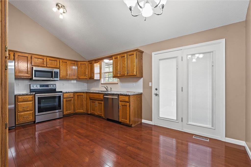 Welcome home to this charming 3-bedroom, 2-bath property located in the highly rated Liberty School District. This home is designed for comfort with a bright layout and great natural light throughout. The living room features a cozy fireplace and vaulted ceilings, giving the space an open and welcoming feel. The kitchen and dining area connect easily to the back deck, making it simple to enjoy meals outside or relax after a long day. The primary bedroom offers a private bath and generous closet space. Two additional bedrooms provide room for family, guests, or a home office. The finished lower level adds even more living space with a second family or recreation room and walk-out access to the yard. You will love the location. This home is close to everyday needs such as shopping, dining, parks, and quick highway access. It sits on a quiet street with friendly surroundings. This wonderful property is move-in ready and waiting for its next owner. Come see it and feel right at home.