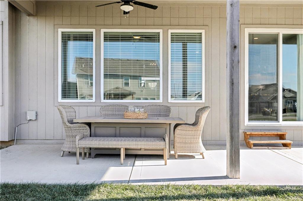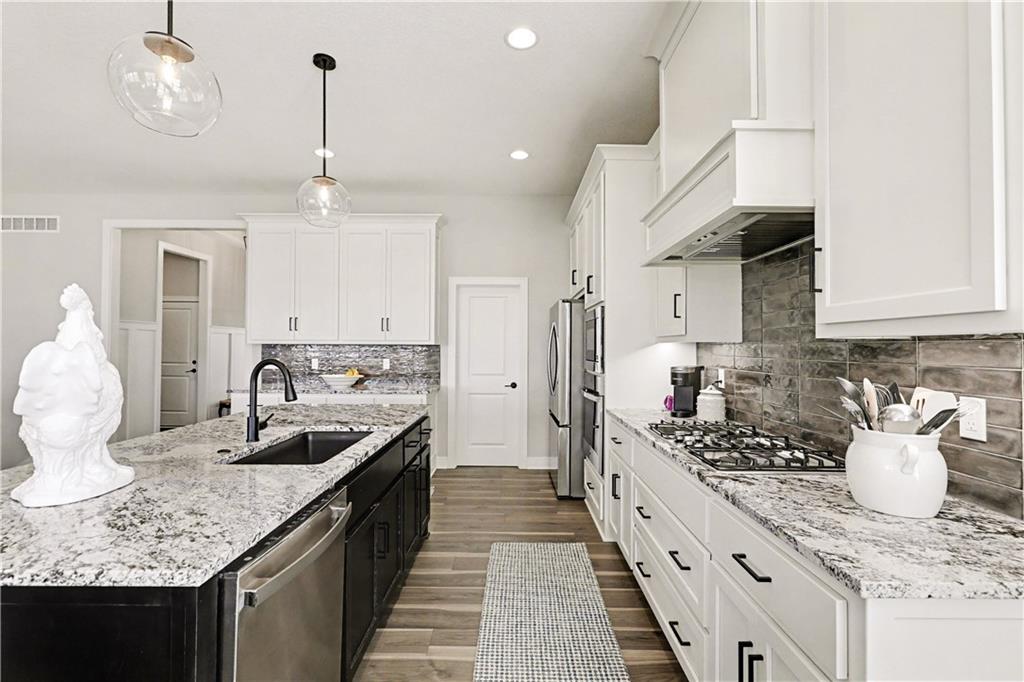 Why buy new when you can get the best value in the neighborhood right here? This stunning reverse 1.5-story is the total package—4 bedrooms, 3 baths, a 3-car garage, and just over 2600 square feet of beautifully maintained space that truly shows like new. Sitting proudly on a flat corner lot, this home greets you with an open floor plan, soaring ceilings, and incredible natural light that fills every room. The kitchen is a standout with its oversized island, abundant cabinetry, granite countertops, stylish backsplash, gas stove, and a walk-in pantry—perfect for everyday living or hosting a crowd. The kitchen flows seamlessly into the great room, complete with custom cabinets and built-ins framing the elegant tiled fireplace. Step out from the dining room onto the fully covered patio, ideal for morning coffee, evening cocktails, or game-day grilling. The primary suite is a retreat of its own with a walk-in shower, double vanity, and a massive closet. The laundry and mudroom are conveniently located right off the primary for easy living. A second bedroom and full bath round out the main level. Head downstairs to a spacious lower level featuring a huge family room, two additional bedrooms, and a full bath—plus an impressive amount of unfinished storage space you won’t want to miss. Located in Prairie Field, you’ll enjoy amenities like a community pool and scenic trails. This home has everything—style, space, value, and location. Don’t miss your chance to make it #1!