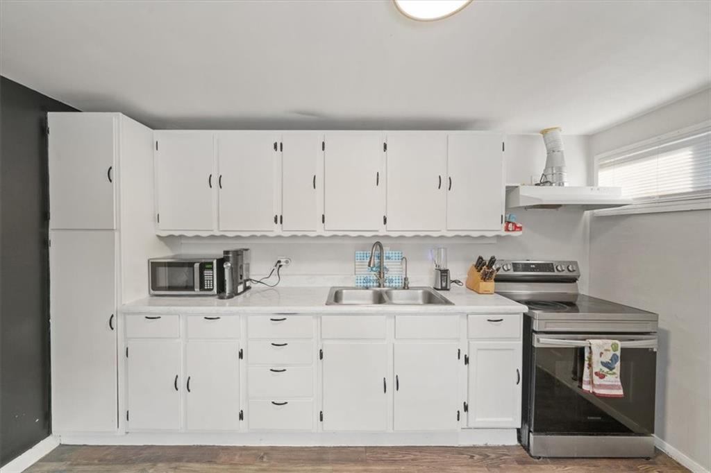 Welcome to a bright and refreshed home that offers far more space than you’d expect. Inside, you’ll find updated flooring throughout, fresh paint, modern lighting, and thoughtful touches that make each room feel warm and inviting. The living area brings in great natural light and is anchored by a clean accent wall, built-in shelving, and a sleek ceiling fan. The oversized kitchen provides an impressive amount of storage, updated counters, newer appliances, and plenty of room to add a dining setup or coffee bar. This home offers flexible living with multiple bedrooms and bonus spaces that can easily serve as offices, playrooms, or creative studios. Each room has been improved with updated floors, modern fixtures, and appealing neutral finishes to make the home move-in ready. The renovated bathroom features fresh tile, a newer vanity, and a clean, modern look. A dedicated laundry area adds even more convenience and storage options. With its mix of updates, versatility, and useful square footage, this home is a strong fit for anyone needing extra rooms or multi-use spaces without sacrificing comfort or style.
