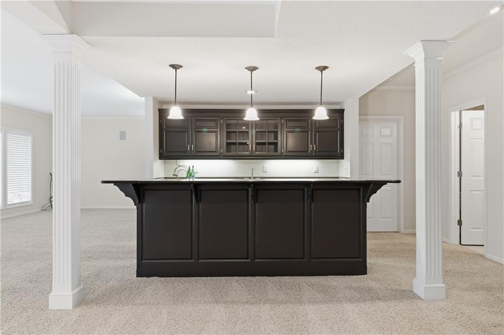 This beautifully maintained one-owner J.S. Robinson 1.5-story home offers exceptional space, quality, and thoughtful updates throughout. Situated on an oversized corner lot with mature trees, the home features a well-designed floor plan with the primary suite and an additional bedroom on the main level, providing flexible and convenient main-floor living. The freshly updated interior includes newly painted walls along with painted kitchen cabinets, buffet cabinetry, and wet bars on both the main level and in the walkout basement. The kitchen features a new backsplash and newer appliances installed in 2023, creating a welcoming space for both everyday living and entertaining. Upstairs, three generously sized bedrooms and a spacious loft provide additional living space ideal for a home office, media area, or playroom. The finished walkout basement is designed with entertaining in mind, complete with a wet bar, half bath, and ample room for gatherings. Outdoor living can be enjoyed from the screened-in porch or patio overlooking the treed backyard, offering a peaceful setting for relaxing or hosting guests. Additional recent improvements include a new roof and two water heaters installed in 2025. Anderson windows throughout the home reflect the quality construction and attention to detail found throughout the property.