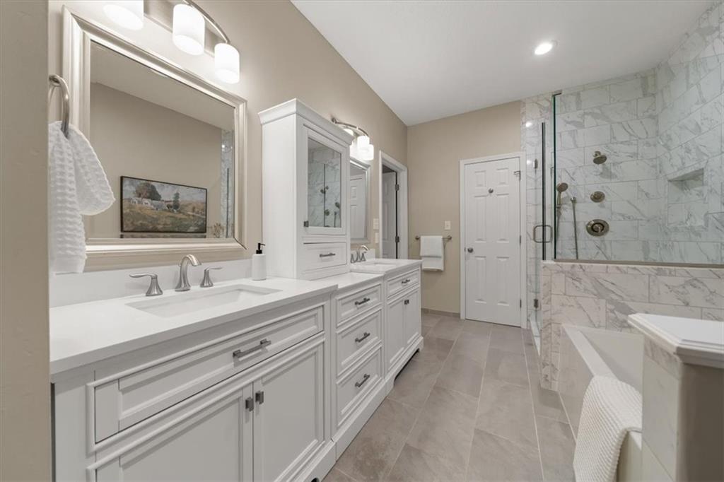 Fresh updates give this home a bright and welcoming! The kitchen features crisp white cabinetry and updated finishes. New interior paint and flooring create a move-in ready setting throughout. Newer roof and windows are an added plus! The primary suite offers an updated bathroom with a modern, polished look. Four bedrooms, 3 full and 1 half bath, plus a finished lower level that adds flexible space for gatherings, a home office, or hobbies. Located in a well-established neighborhood with steps from award winning Blue Valley elementary and high schools. A FANTASTIC choice for buyers looking for space, comfort, and an updated, move-in ready home!