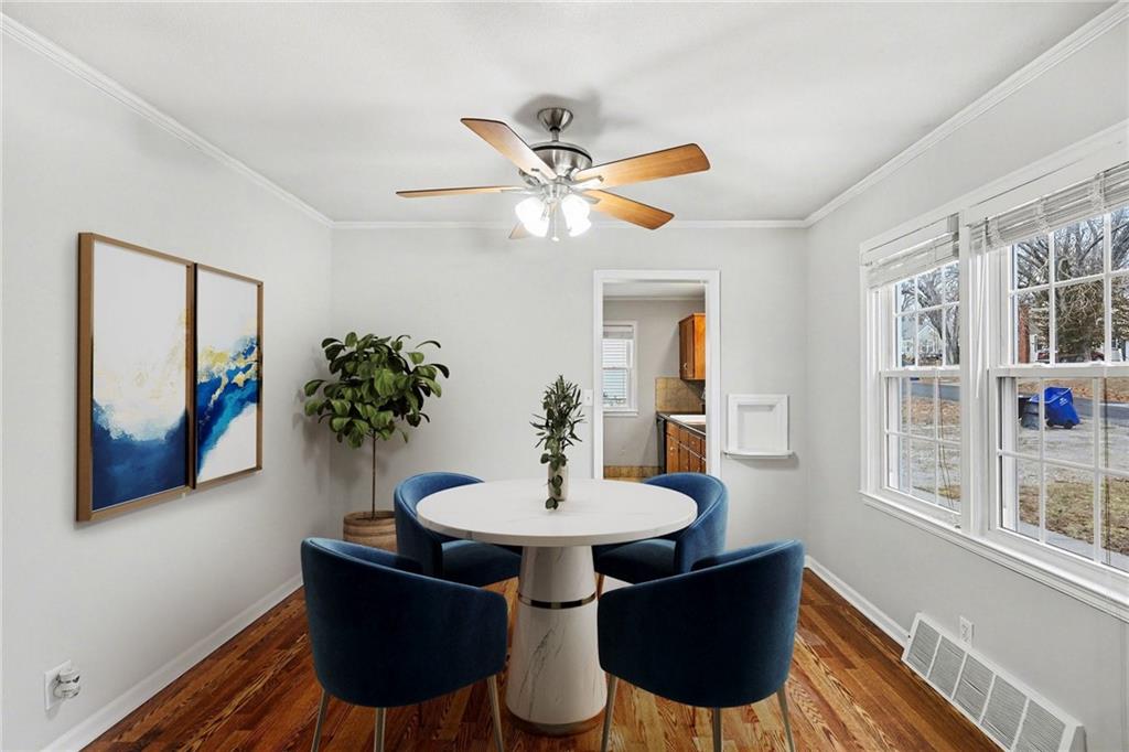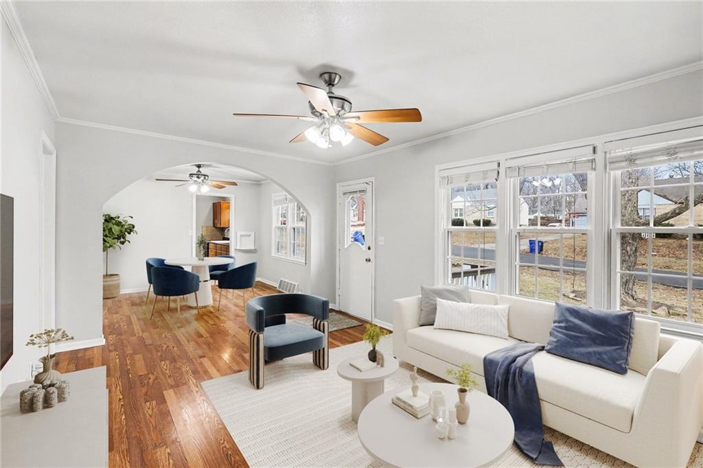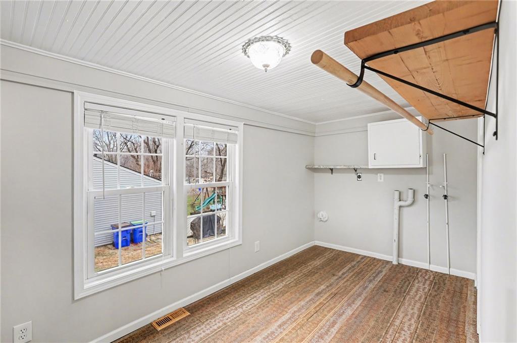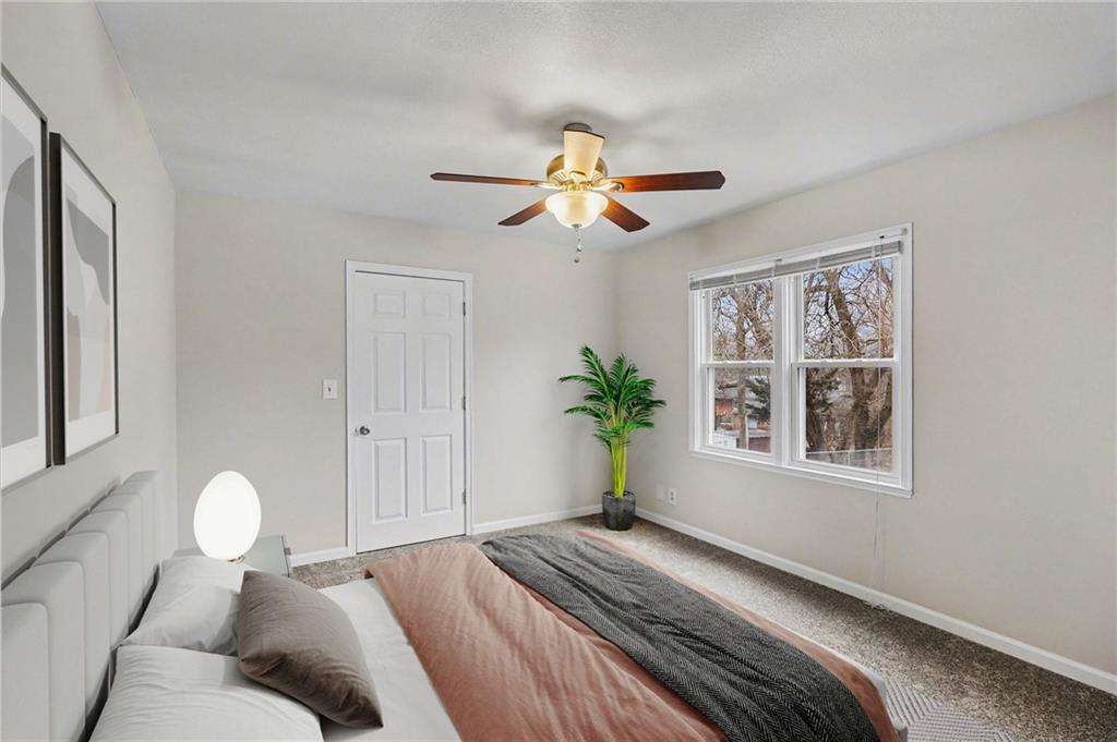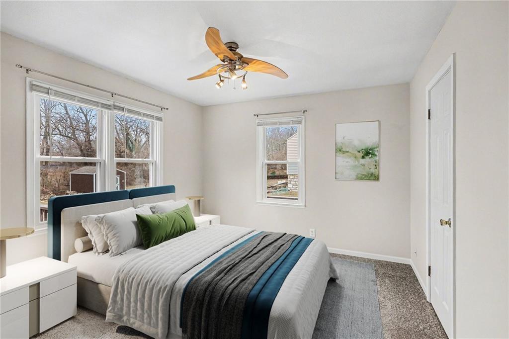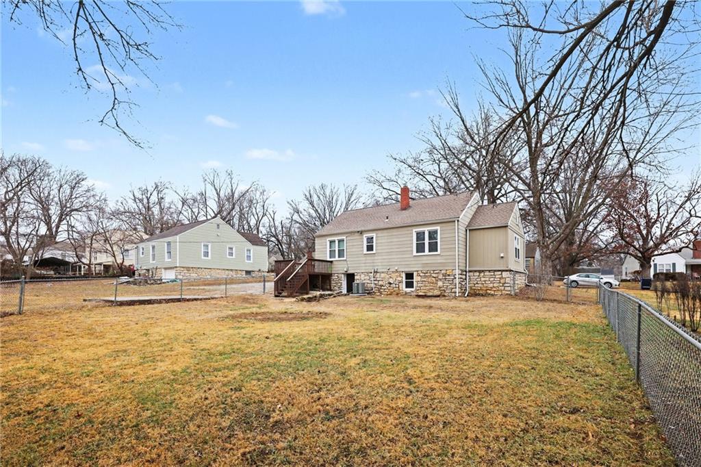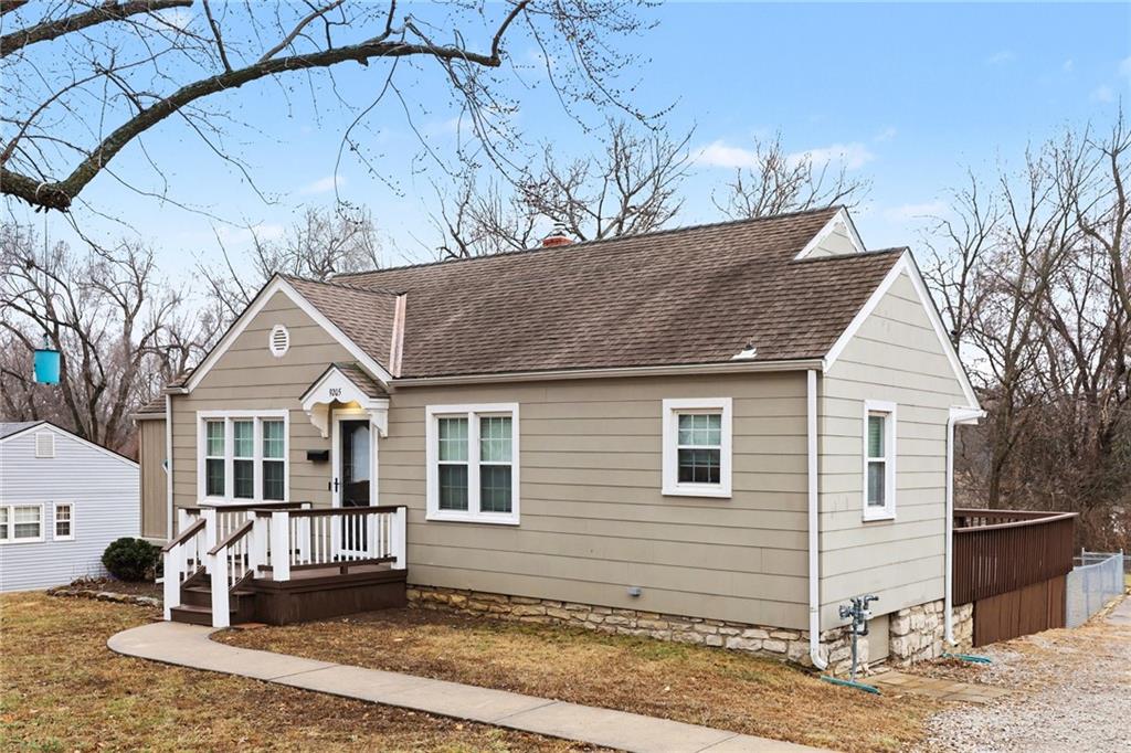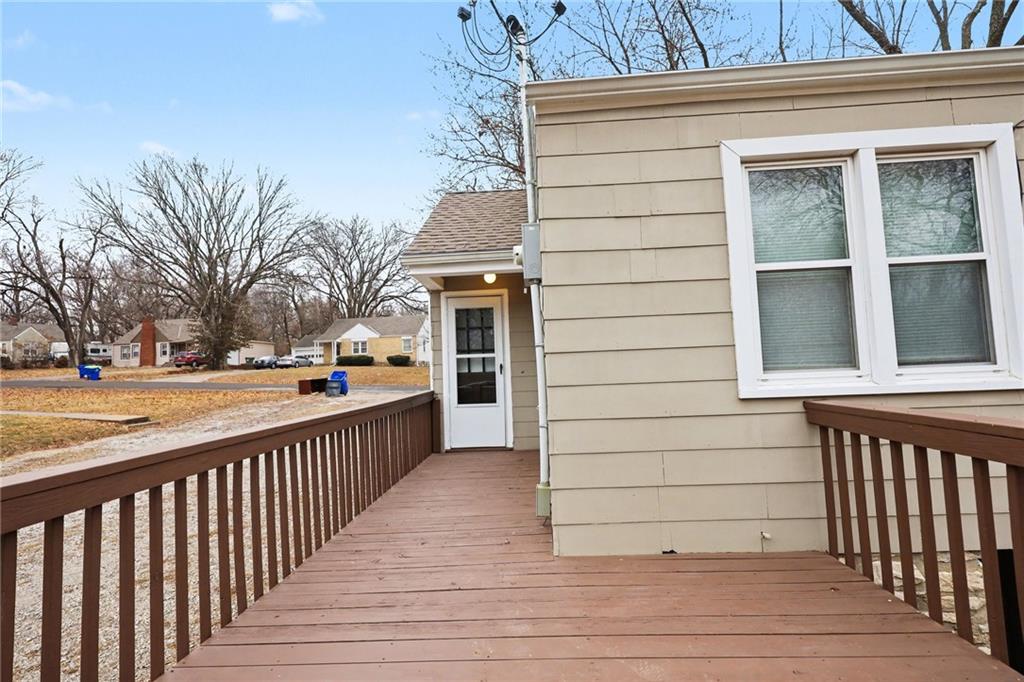 Charming ranch style home in Raytown with a flexible layout and fresh updates! This 2-bedroom, 1-bath home features a durable composite front porch, a front-facing living room, dining area, and kitchen. Plus two bedrooms located at the back of the home with a full bath in between, for added privacy. The main-level laundry room offers the potential to be converted into a 3rd bedroom or office space, if the laundry is relocated to the basement. Inside, the home is freshly painted throughout, with brand new carpet in the two bedrooms. The basement includes ample storage space and backyard access. Enjoy your deck overlooking the backyard, partial fencing for your pets or play area. Mature foliage along the back of the property creates a peaceful, private green-space feel.