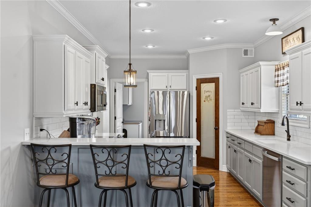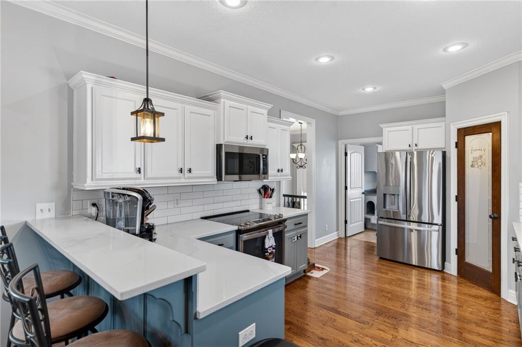 Gorgeous and new to the market! Beautifully updated 3-bedroom, 3-bath home with basement potential for a 4th bedroom! This move-in-ready property features a fully remodeled kitchen with new quartz countertops, classic subway tile backsplash, painted cabinetry, and all-new appliances including range, refrigerator, microwave, and dishwasher. Thoughtful improvements continue throughout with new flooring in the living room, hallway, and guest bath, along with a refreshed guest bathroom showcasing shiplap accents, painted cabinetry, new mirror, stylish floating shelves, and updated flooring. The primary bathroom has been remodeled with a new shower, shiplap detailing, new mirrors, and painted cabinets, creating a modern yet comfortable retreat. The entire upstairs interior has been painted, while custom storage cabinets were added to the laundry room for added organization and convenience. Exterior updates are just as impressive, with painted siding and shed, gorgeous brick accents, new front exterior lighting, a brand-new roof, and new garage doors. Enjoy updated front and backyard landscaping ideal for entertaining or relaxing. With ample living space, quality upgrades, and the option to add a 4th bedroom in the basement, this home offers style, comfort, and future flexibility in one exceptional package. Buyer and Buyers agent to verify taxes, schools and room sizes.
