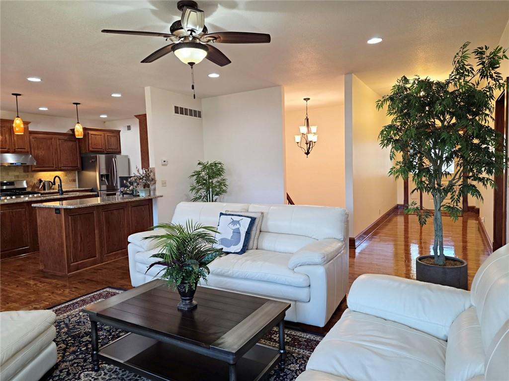 Move-in Ready and PRISTINE! This beautiful ranch home boasts a sprawling, open-concept floor plan and is perfectly situated in a peaceful cul-de-sac setting. The heart of the home is the spectacular, oversized Chef's Kitchen, featuring gleaming granite countertops, tons of cabinetry, and a walk-in pantry, which flows seamlessly into the dining and expansive living room—ideal for entertaining! Enjoy the convenience of main-level living with a laundry room and a desirable secondary bedroom/full bath on the main floor. The fully finished, daylight walk-out basement dramatically expands your living space, offering two additional bedrooms, a full bathroom, a large family room, and spacious storage. As a fantastic bonus, the additional non-conforming room is the perfect versatile space for a dedicated home theater, exercise studio, or private office! Don't miss this opportunity.