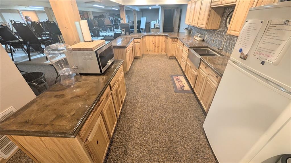 This expansive property in El Dorado Springs, Missouri, offers incredible potential for a variety of uses, making it an ideal investment. While currently configured as a church, its versatile layout and features lend themselves perfectly to numerous other ventures. Consider the possibilities: this structure is well-suited for an adult daycare or a childcare center, offering ample space for activities and dedicated areas. With some creative vision, this property could also be transformed into a unique residential dwelling, providing spacious living areas and a distinctive design. Beyond these, you could envision a community center, a private school, or even a specialized event venue—the options are truly vast. The walkout basement is a true highlight, boasting a beautiful and highly durable pebble epoxy-style floor. This unique finish is not only visually appealing but also incredibly practical for high-traffic areas. The kitchen is another standout, featuring stunning epoxy countertops and an abundance of cabinetry—perfectly equipped for a commercial kitchen (please note: the owner will be removing the stove and griddle). This property in El Dorado Springs represents a remarkable opportunity to invest in a highly adaptable space with significant upside potential.