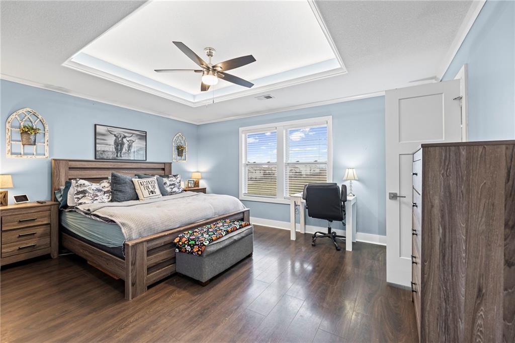Welcome home to this stunning Monterey 2-story—full of charm, function, and upgrades throughout. With excellent curb appeal and a fully fenced backyard, this home truly checks all the boxes. Step inside to an inviting, open main floor designed for easy family living and effortless entertaining. The kitchen, breakfast area, and living room flow together seamlessly, featuring a large center island, gas range, gorgeous granite/quartz counters, and an enormous pantry—perfect for the home chef. You’ll also love the versatility of the main-floor 5th bedroom, which can double as a home office or formal dining space. Upstairs, the spacious primary suite offers a spa-like bathroom and an oversized walk-in closet you’ll have to see to believe. Secondary bedrooms are generously sized with great natural light. Located just moments from Nike Elementary and with quick access to I-35, you get convenience and a peaceful country feel. Tuscan Farm also includes upgraded standard features like front and side yard sprinklers, beautiful stone counters in all baths, and modern finishes throughout. Don’t miss your chance to own a like-new home in an incredible location—this one is truly move-in ready!