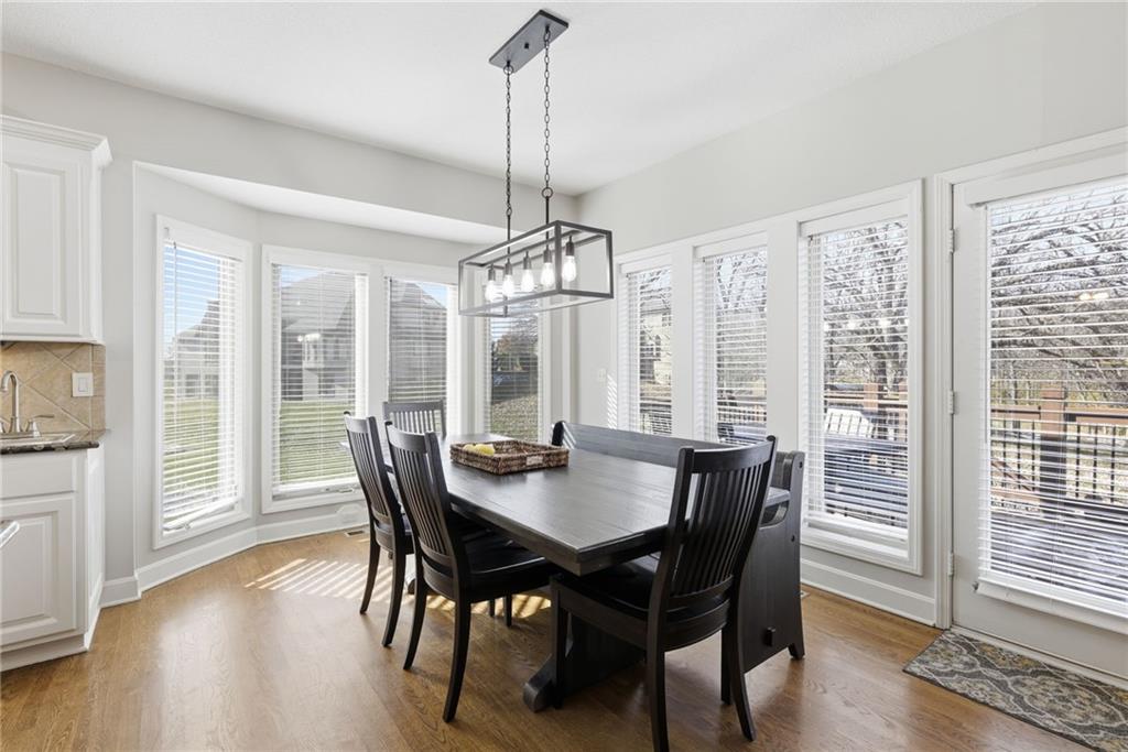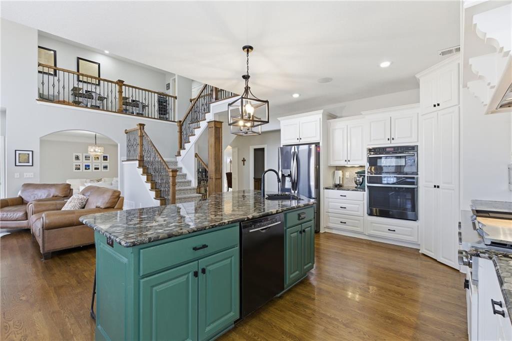 DO YOU NEED MORE SPACE? Attention to detail can be found in this beautiful mastercrafted 1.5 STORY OPEN FLOOR PLAN HOME that features 7 bedrooms & 5.5 bathrooms. Located at the end of a cul-de-sac in the desired Woodland Shores subdivision, this 6,600 sqft PLUS a 600 sqft indoor rec / basketball area. 20' ceiling in the spacious entryway w/ formal staircase! Hardwood & tile flooring throughout the main level which is roughly 2,700+ sqft. The hearth room features a gas fireplace, floor to ceiling windows, & staircase #2. The Chef's kitchen is state-of-the-art, w/ top of the line stainless steel appliances, gas cooktop, upgraded granite countertops, custom cabinets, walk-in pantry, coffee bar, & a spacious island. A formal sitting room, formal dining room, sun room & large study are also located on the main floor along w/ the owners suite which features a “spa-like” bathroom w/ whirlpool tub, walk-in tile shower w/ multiple shower heads & three vanities. The walk-in closet has a hidden door that leads directly to the study. Upstairs, 4 more oversized bedrooms, 3 full bathrooms plus a loft. The walk-out basement features a wet bar, family room, second laundry room & bedrooms 6,7 & Nonconforming 8. Down another flight of stairs to the basketball area that is located under the oversized 3 car garage. Multiple large storage areas along w/ an outside access storage room that is perfect for bikes, scooters & toys. Woodland Shores is an upscale lake community. Nestled on the Northeastern shores of Prairie Lee Lake and just south of Lake Jacomo, it is surrounded by thousands of acres of parkland, trails, and undeveloped woodlands. Enjoy the beautiful 4000 square foot community swimming pool, covered 10 slip marina, and offers quick access to great shopping centers & award-winning Lee’s Summit School District.