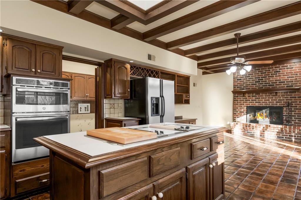 This impeccably crafted single-owner custom home, built and lived in by a master home builder for over 45 years, offers a level of construction quality and architectural detail that is simply not attainable in today’s new builds without spending a fortune. Set at the quiet back of a cul-de-sac in Longwood Forest, a secluded enclave known for its one-of-a-kind homes, this property features timeless craftsmanship, oversized spaces, and endless potential for expansion. Inside, you’ll find massive ceiling heights in the great room, extra-thick crown molding, and ADA-compliant walkways. First-floor living is at its finest here, with a spacious primary suite plus a main-level guest suite—perfect for multigenerational living or long-term guests. The home was designed with future growth in mind. The lower level offers both garage entry and central house entry, making it ideal for finishing into a spectacular additional living area—bringing the home to 6,000+ square feet of livable space if desired. Two large walk-in attic spaces upstairs provide the opportunity to add an additional bedroom, a laundry suite, or a mudroom. Beautiful Pittsburg, KS brick walkways and patios, stone accents, and a secluded brick courtyard have been lovingly enjoyed for decades. The circle drive, brick fence, stone-and-brick exterior, oversized front sconces, and meticulous design choices create classic curb appeal that stands the test of time. The home offers outstanding proximity to Town Center Plaza, highway access, and the new Hallbrook North development—all while maintaining low HOA dues. This is the perfect “forever home” for a buyer seeking exceptional bones, main-level living, and unmatched construction quality—or an incredible canvas for someone dreaming of expanding into a truly remarkable masterpiece with minimal maintenance. Homes of this caliber, character, and structural integrity simply do not come to market often. Chandelier in main entry is not included.