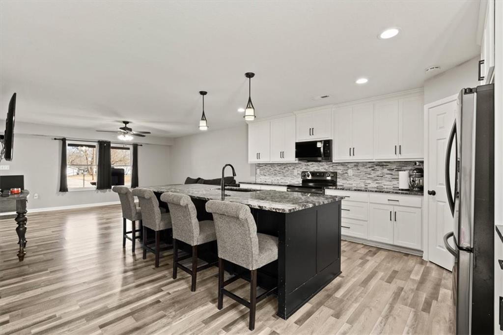 Relax on the inviting front porch and enjoy the peaceful surroundings of this beautiful home located in the heart of Archie. Built just three years ago, this residence offers modern comfort with plenty of space for everyday living. Step inside to a bright, open-concept kitchen and living area—perfect for entertaining. The kitchen features custom cabinetry and an impressive 11-foot granite island that provides both style and functionality. The main level boasts a spacious primary suite with a walk-in closet and a stunning tile-lined walk-in shower. Upstairs, you’ll find additional bedrooms offering flexibility for family, guests, or a home office. The backyard is ready for your dream outdoor setup, already prepared for a pool with a limestone pad and unique blue lighting accents along the privacy fence. A wired shed is also included and ready for hookup. Additional highlights include a security system that stays with the home. This move-in ready property combines modern features with small-town charm—don’t miss your opportunity to make it yours.