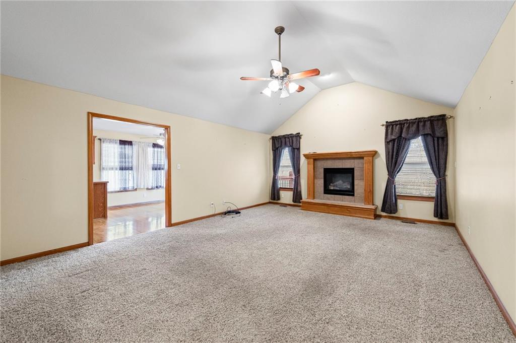 This inviting ranch offers the kind of everyday comfort that instantly feels like home. A bright, open living room welcomes you with vaulted ceilings, a cozy fireplace, and plenty of space to relax or gather. The kitchen flows easily into the dining area, with warm wood cabinets, generous counter space, and natural light pouring in from the back deck—perfect for slow mornings, weeknight dinners, or hosting friends. The primary suite sits tucked away for privacy, complete with a spacious bedroom, walk-in closet, and full bath. Two additional bedrooms and another full bath give you flexibility for guests, hobbies, or a dedicated workspace. Downstairs, the full walkout basement opens a world of possibilities—future expansion, recreation, storage, or an investment opportunity with room to grow. Step outside to the deck overlooking a wide, open yard and view of a neighboring pond, with a peaceful, country-like feel, yet you’re still close to everyday conveniences. A two-car garage, main-level laundry, and a layout designed for easy living make this home a fantastic fit for anyone seeking comfort, simplicity, and potential. Whether you're envisioning your first home, a place to downsize with style, or a property with long-term value, this one delivers the charm and flexibility to make it your own.