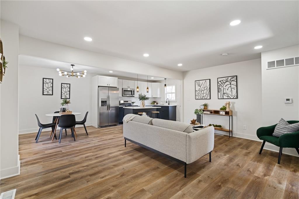 Completely reimagined from the studs up, this beautifully rebuilt 4-bedroom, 2-bath ranch offers the perfect blend of modern updates and comfortable living. Nearly every inch of the home has been thoughtfully rebuilt, giving you the feel of new construction with the charm of a classic ranch layout. The main level features the primary bedroom along with a versatile second bedroom that can easily serve as a home office. Downstairs, you'll find two additional bedrooms and a full bathroom—ideal for guests, family, or extra living space. Enjoy peace of mind with major mechanical updates already done: the roof, HVAC system, and water heater are all just one year old. Inside, stylish LVP flooring runs throughout the home, complementing the bright, airy finishes that create a clean and welcoming feel in every room. With its extensive renovation, smart layout, and modern touches throughout, this home truly stands out as THE ONE to see.