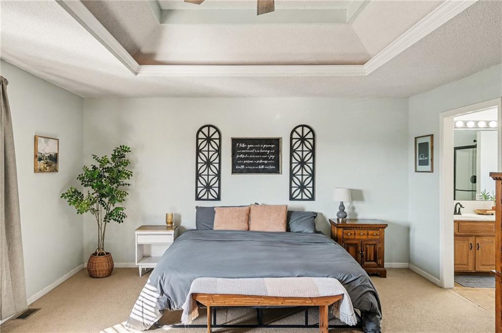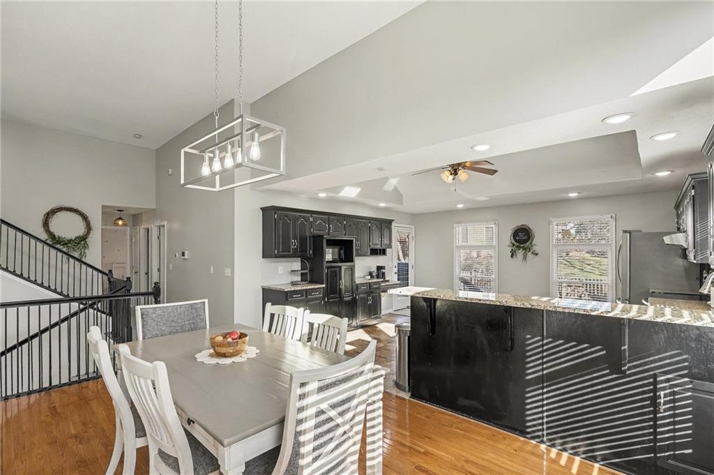 Fresh, modern paint inside and out sets the tone for this beautifully updated home. An expansive, open-concept kitchen anchors the main living area, enhanced by vaulted ceilings, skylights, and abundant natural light for a bright, upscale feel. Retreat to the oversized primary suite, complete with a double vanity, walk-in closet, Jacuzzi tub, and separate walk-in shower. Two additional upstairs bedrooms provide excellent space and comfort. The main level offers inviting living space with a stylish fireplace, while the finished lower level adds a spacious family/rec area, the fourth bedroom, and a walkout to the yard. A versatile sub-basement delivers outstanding storage, hobby space, or room for future expansion. All nestled in the sought-after Carriage Crossing neighborhood.