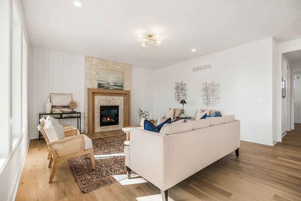 The Magnificent "Magnolia" by Chris George Homes, LLC. with a 4-Car 40 ft long pass through Garage on a cul-de-sac homesite in Stonebridge Pointe! The "Magnolia" has so many custom features that you will absolutely love! And practical features like high efficiency HVAC, Pella Windows, 8' Tall Garage Doors. It's bright, open and great for entertaining. It features 4 bedrooms and 3.5 baths and a main floor private office which is located off the front entry. Walk into a stunning great room, chef's dream kitchen with huge island and site finished white oak floors, dining room surrounded by windows and service bar with pantry prep area. The mudroom in the back hall has a large built-in boot box. Spacious primary suite with spa like master bath are upstairs with 3 other spacious bedrooms and laundry room. Top of the stairs has loft area/reading nook or study area for the kids. Home has a private covered deck off the back of home with stairs to the yard and an irrigation system for a beautiful lawn and landscaping. The home backs to the southwest and the large and open LL is ready for finish. 1238 Acre Heritage Park is 2.2 miles away with a Lake, Dog Park, Sports Parks, Golf Trails and so much more. Garmin International Headquarters 2.0 miles away. 1-35 and 151st Street 2.4 miles for easy highway access and Olathe Medical Center Pavilion Hospital is 4.6 miles. K-8 schools 0.2 miles away. Taxes and mileage are estimated. Room Dimensions are approximate. Photos are of the model home which shows some options that are different from the existing home. Please see the Community Managesr for more details. As of the listing date the Builder's estimate is for a Late February to Early March 2026 move-in date.
