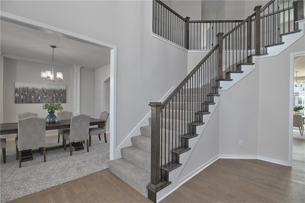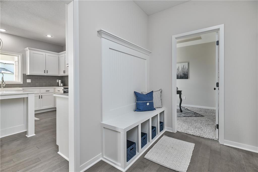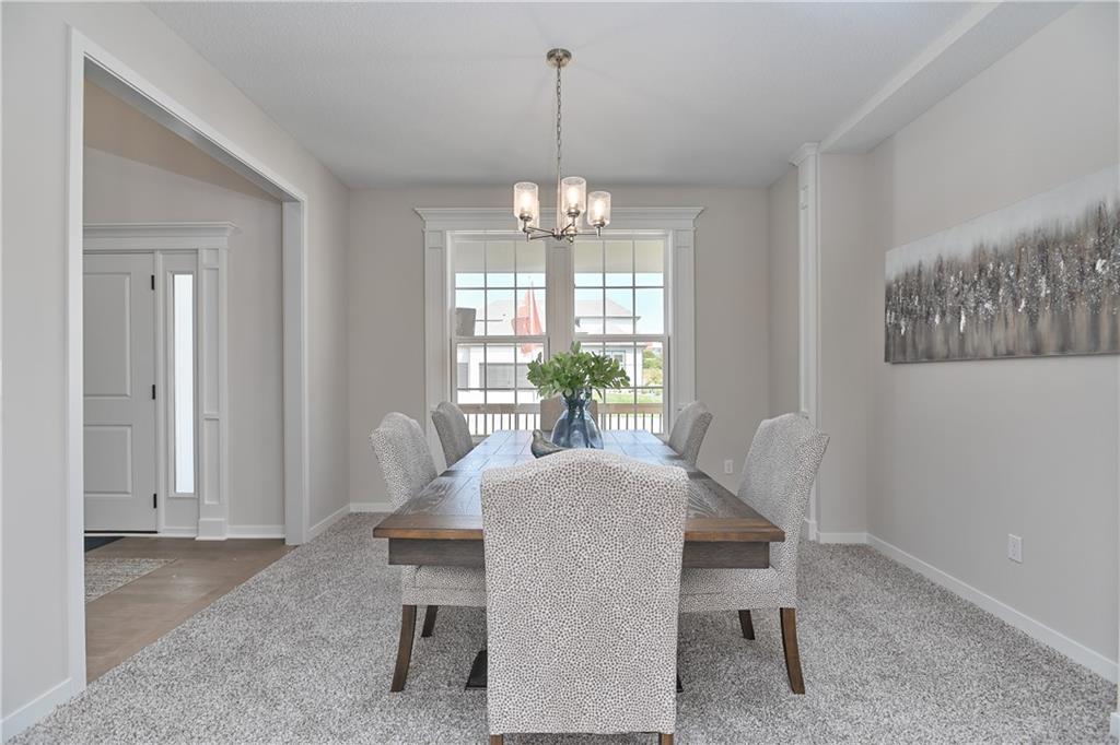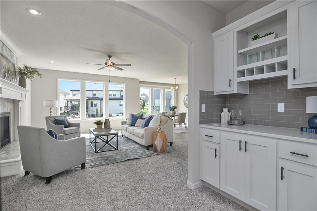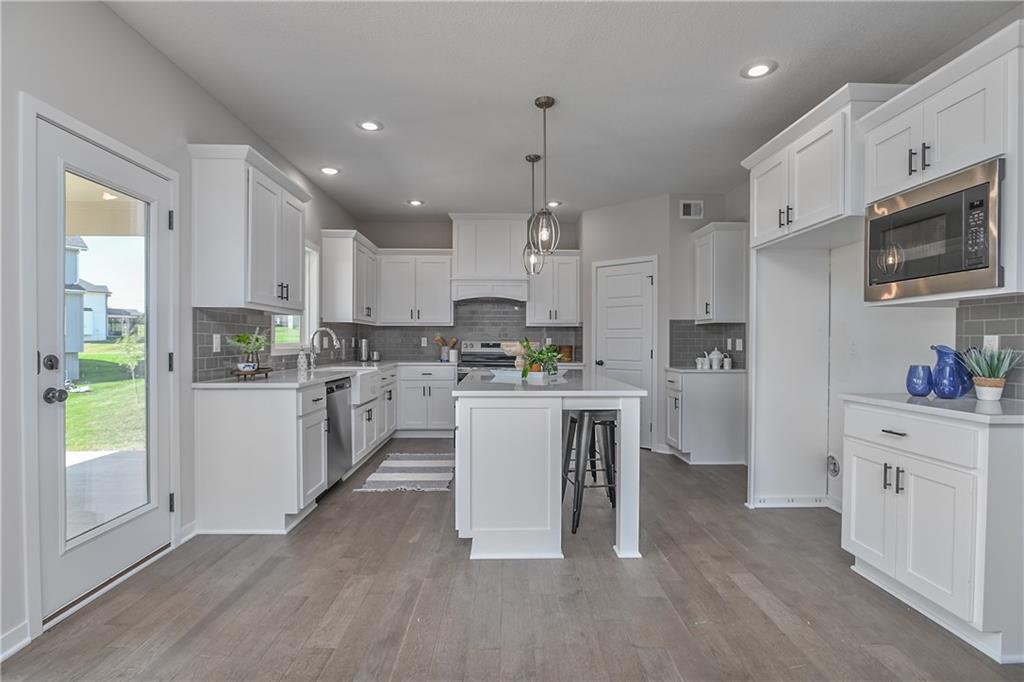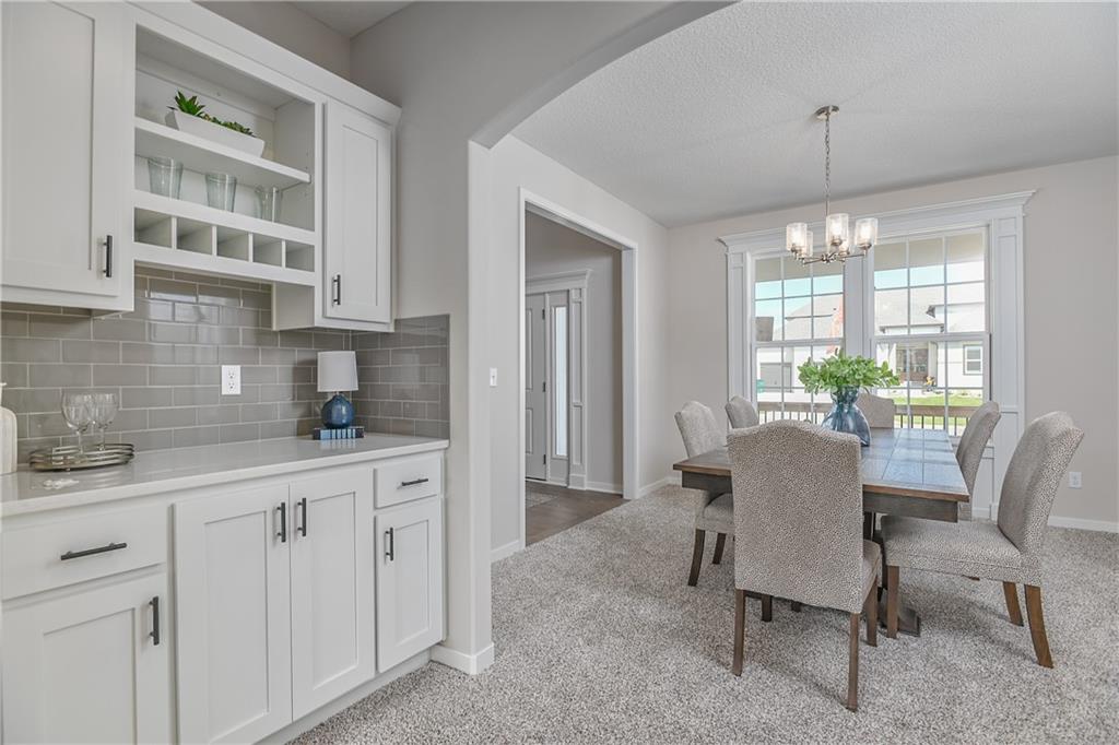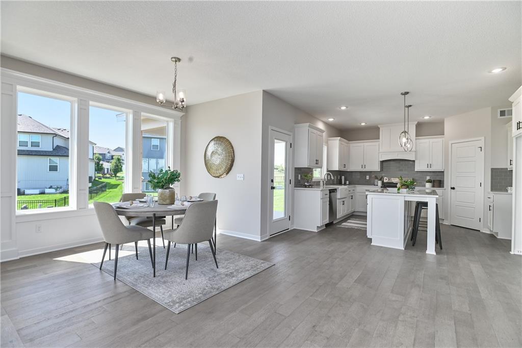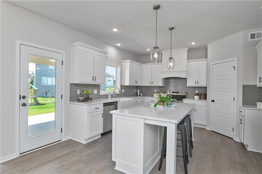 Priced to sell, HURRY and start the new year in a new home! Enjoy the added landscaping and stunning lake views with Prieb Homes’ “Harlow 5” plan, featuring a grand two-story vaulted entry that opens to a spacious great room, kitchen, and breakfast area. The kitchen boasts a large center island with ample workspace and bar-height seating. A boot bench and entry closet sit in the mudroom, while a dry bar connects the great room and dining room. The main level offers a 5th bedroom or flex space, perfect for guests or a home office. Upstairs, the laundry room is accessible from both the hallway and the walk-in closet of the roomy master bedroom. The master bath includes a tub and walk-in tile shower, and all secondary upstairs bedrooms have their own private bathroom entrances. All this within walking distance to the elementary school!