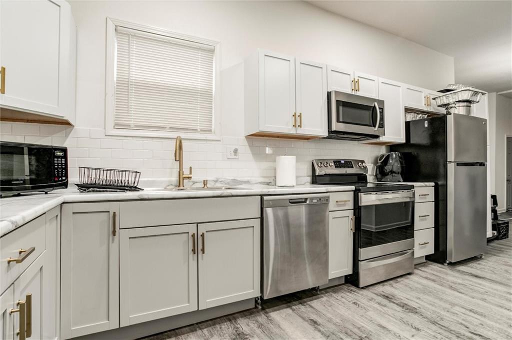 Beautifully renovated single-family home thoughtfully configured to offer exceptional flexibility for today’s lifestyles. While legally a single-family residence, the home is set up as two distinct living spaces—ideal for owner-occupied short-term rental opportunities, multigenerational living, or a private guest setup. The main level features a comfortable 2-bedroom, 1-bath living area, while the second floor offers a spacious 3-bedroom, 1.5-bath layout, providing separation without sacrificing the cohesion of a single home. Both levels have been tastefully updated with modern finishes, creating a move-in-ready experience throughout. Additional highlights include off-street parking and a prime central location just minutes from downtown, the Crossroads, Liberty Memorial, and major highways—putting dining, arts, entertainment, and commuting within easy reach. A rare opportunity to own a beautifully updated home that offers versatility, functionality, and an unbeatable up & coming Kansas City location. WELCOME HOME