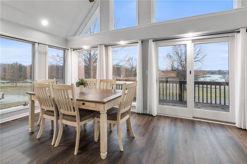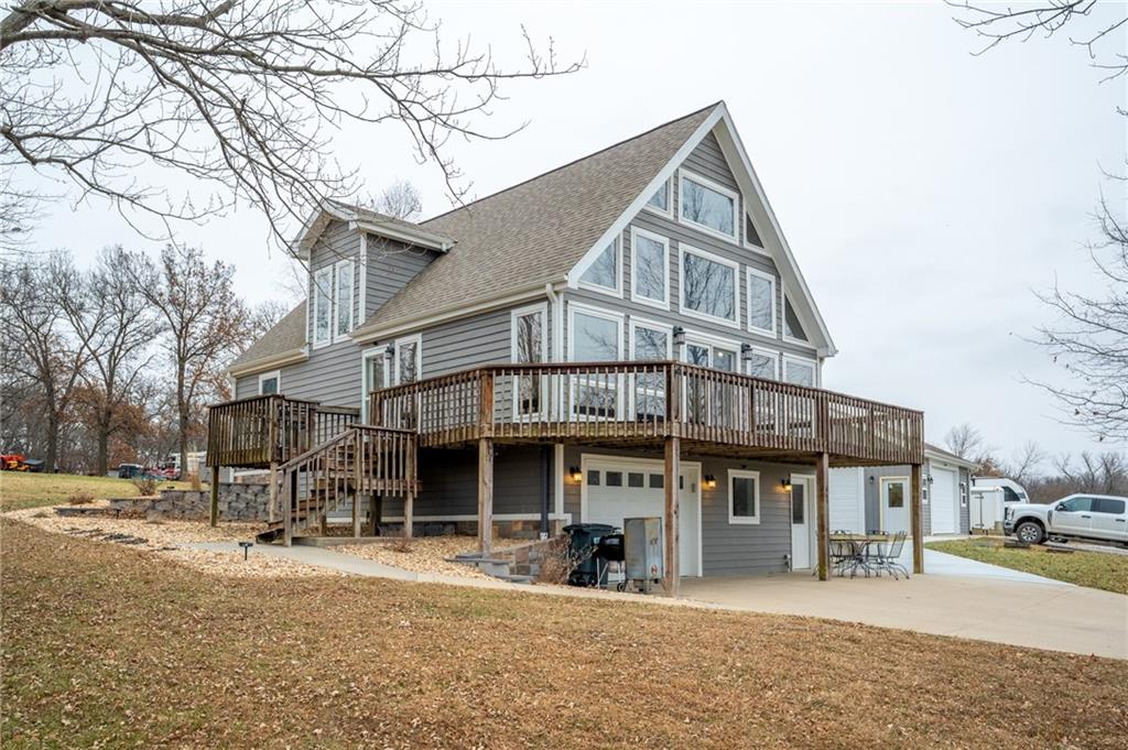 Breathtaking Lake Views! This inviting lake property offers the flexibility of a weekend retreat or a spacious full-time residence. Offering just a little under 1900 sq ft this open-concept design is anchored by a bright, airy great room with soaring ceilings. Step outside to the expansive deck, where relaxing and soaking in the surrounding natural views will quickly become a favorite pastime. The upper level includes a private bedroom, with plenty of attic storage, and full bath, creating a peaceful guest suite or quiet retreat, with beautiful views of the lake with the A-Frame style windows allowing beautiful natural light and majestic sunsets! The primary bedroom with walk-in closet and laundry is situated on the same floor as your main kitchen giving you everything you need, cozy up next to the electric fireplace and take in those views!! The lower level provides a comfortable second living area complete with an electric fireplace, bathroom, and a great spot for a home office, or it can be used as a nonconforming bedroom. With three bathrooms total, there’s plenty of room to host family and friends and truly enjoy lake life together. The basement level adds a unique touch with a second kitchenette featuring a sink and refrigerator, just add your favorite countertop appliances and you’ve got a functional secondary kitchen. Open the garage door and enjoy seamless indoor-outdoor entertaining with beautiful lake views and a true lakeside atmosphere. A detached 24’ x 30’ heated garage with three 9’ doors offers endless possibilities, from storing boats, vehicles, and lake toys to creating an additional entertaining space, or awesome workshop. Situated on two lots, this property provides extra room to spread out, expand, or simply enjoy more outdoor space. Conveniently located near Community Area #6, you’ll have quick access to excellent water and a nearby dock for easy on-and-off use, everything you need to fully embrace the lake lifestyle.