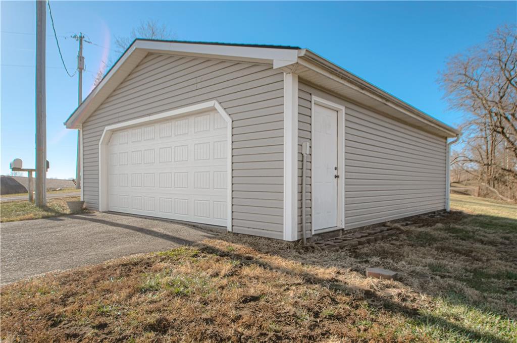 Enjoy the perfect blend of peaceful country living in this charming Dearborn property, located just 20 minutes from Platte City. Surrounded by open farmland with a few neighboring homes on smaller lots to the north, this home sits on open acreage—ideal for hobby farming, outdoor activities, or simply enjoying wide-open space and privacy. This 1.5-story home offers 4 bedrooms and 2 bathrooms, featuring a wraparound deck and a detached 2-car garage/workshop complete with a concrete floor and electrical—perfect for projects, storage, or extra workspace. Step inside to a long, welcoming living room that flows into a formal dining area, creating a great space for gatherings. The kitchen is a separate room and connects conveniently to a full bathroom and the main-level primary bedroom. The primary suite also features its own private deck/back porch—an ideal spot to relax and take in the peaceful surroundings. Just off the dining room, you’ll find the laundry area and stairs leading upstairs to three additional bedrooms and a bathroom. The former upstairs primary was originally two rooms and has been combined into a spacious bedroom with its own bathroom. Two more generously sized bedrooms complete the upper level. This home checks all the boxes: open acreage, country living, a detached garage/workshop, outdoor space, and the convenience of main-level living.