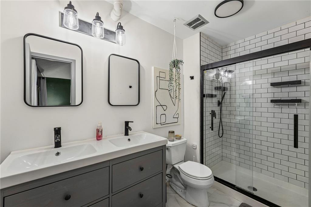 Great side to side split with updated kitchen and bathrooms, with open concept/yet separation and spacious feel. Kitchen has large center island with plenty of storage including pantry. Great space for entertaining all main level areas that flow smoothly from kitchen front room through open kitchen. WHAT SETS THIS HOUSE APART from many side to sides is the entry to the basement is inside the house with a fully usable two car garage. ALSO, laundry room is between main level and basement. Great location and great house with large fenced back yard!