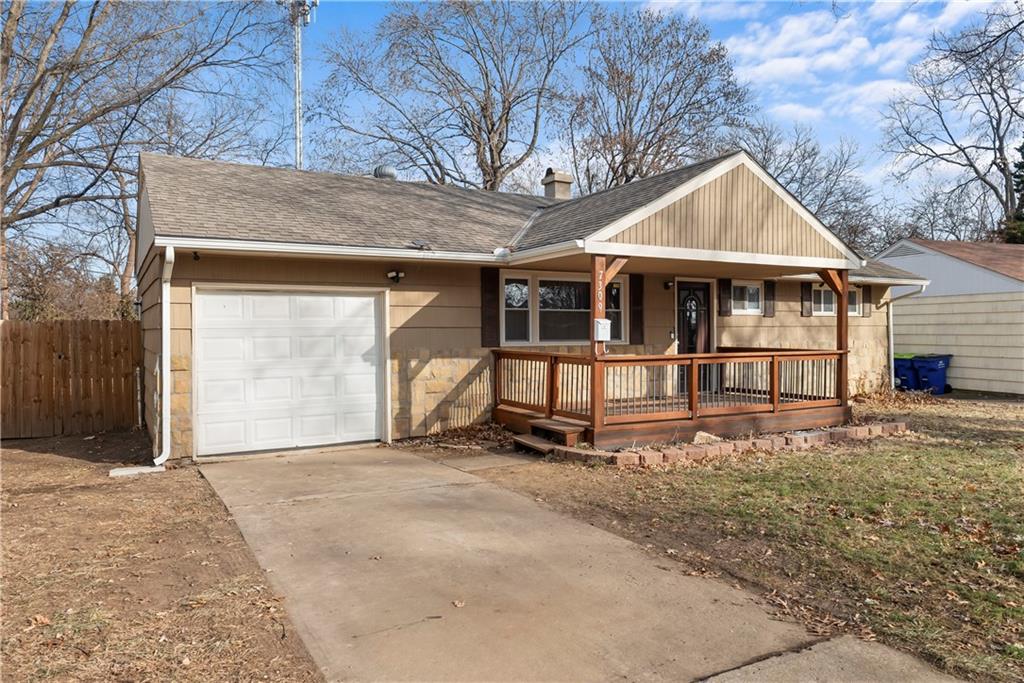 Move-in ready Raytown ranch home ideal for owner-occupied buyers! This well-cared-for single-story home offers easy main-level living with a spacious living room featuring brand-new carpet and an oversized picture window that brings in abundant natural light. The eat-in kitchen includes freshly painted white cabinets, tiled flooring and backsplash, and all appliances stay, making this home truly turnkey. The main level features three bedrooms, with hardwood floors in two bedrooms and new carpet in the third. Hall bathroom includes a tub/shower combo. Fresh interior paint throughout creates a clean, neutral feel—perfect for buyers who want a home ready to move into & enjoy immediately! Enjoy outdoor living with a large fenced backyard, ideal for pets, entertaining, or gardening, plus an oversized covered front porch for relaxing. Attached single-car garage provides convenient parking and extra storage. An excellent opportunity for buyers looking for affordable homeownership, low-maintenance living, and a move-in ready home in Raytown. Roof is 5 years old & sewer line was replaced approx 4 years ago.