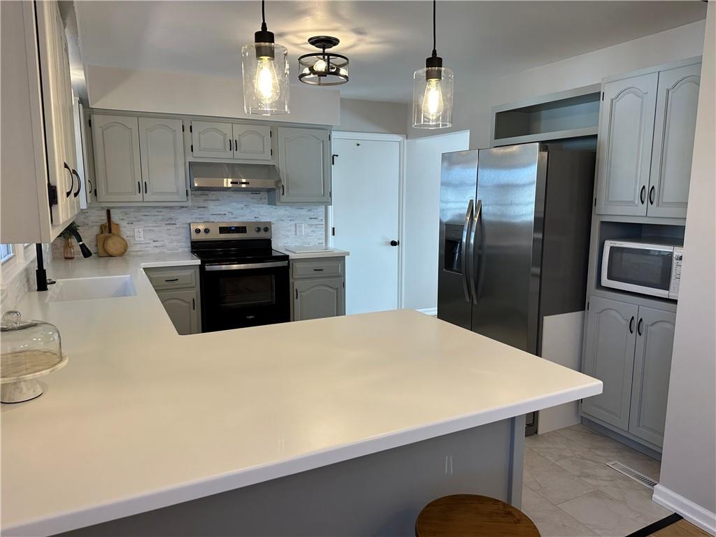 Lovely Remodeled True Ranch. 3 Bedroom 3 Bath, 1400 Sq. Feet, fenced yard, new appliances and so much more. Refinished White Oak Floors, New LVP flooring in Family room, Totally remodeled bathrooms with custom vanities. New Lower level Family room, bedroom 3, full bath with large shower. new plumbing from slab up, Sewer line main already camered. Solid surface countertops with some new cabinets. New Range, refrigerator, dishwasher and vent hood. New water heater and so much more. Main level has the 2 bedrooms and 2 baths with one as a master or could use the new bedroom bath on lower level for that perfect MBR if you choose. Just a wonderful home and is updated and fresh. Behind you is open space. Call for your personal showing, or bring along your agent.