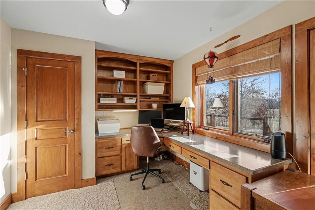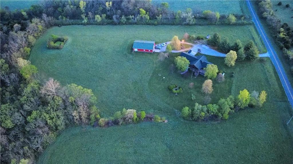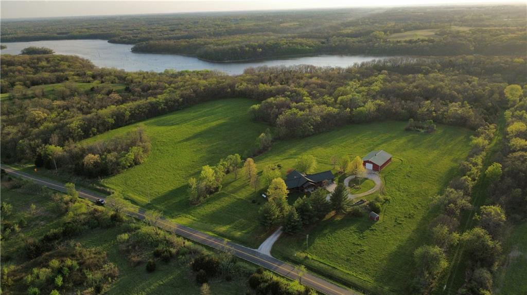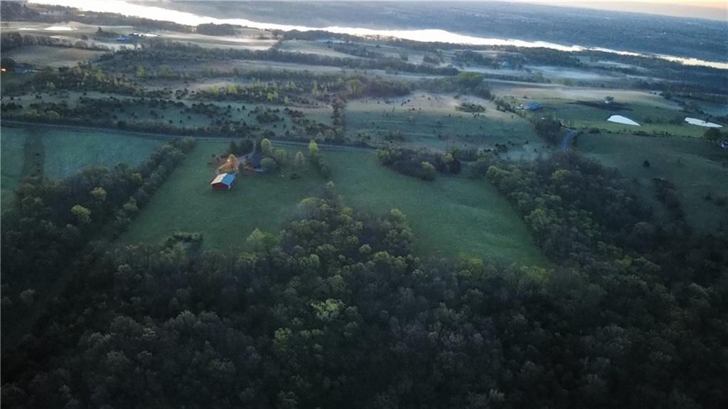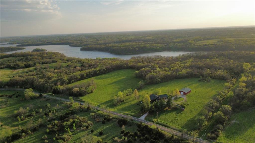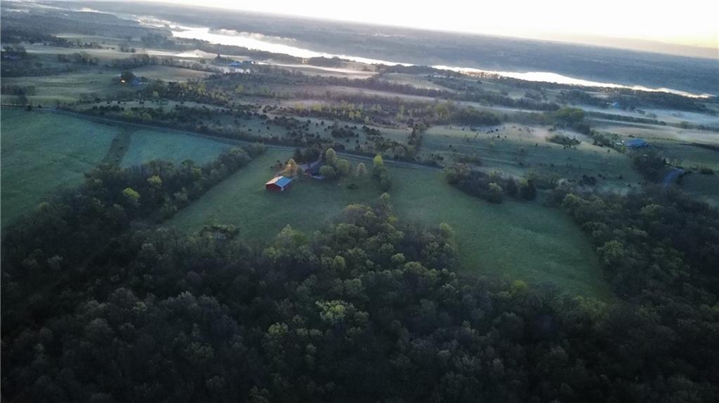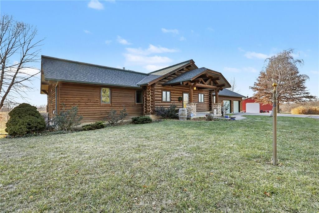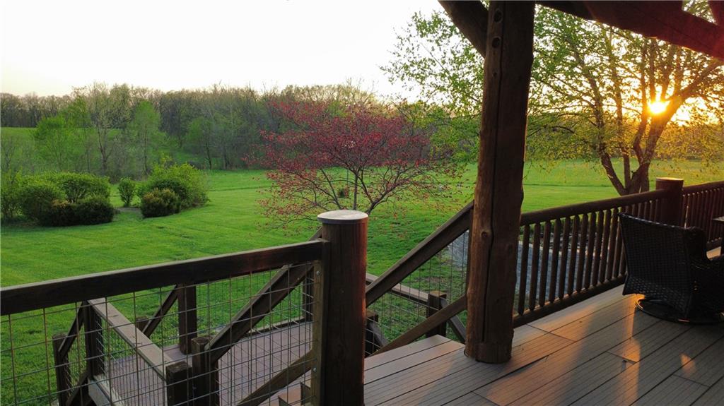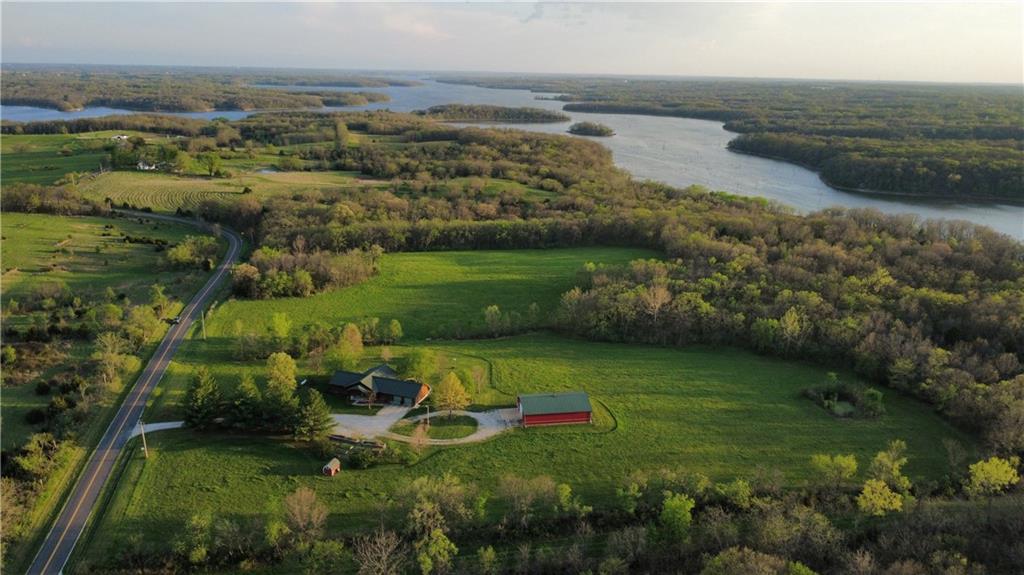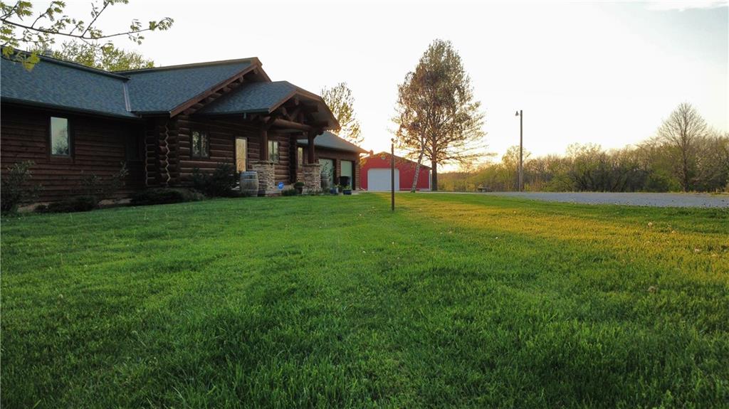 Tucked away on 23 breathtaking acres, this 3,162 sq. ft. Craftsman ranch–style custom log home offers a rare blend of thoughtful design, and unmatched natural surroundings. Built in 2003 and lovingly maintained by its original owners, the home showcases full-round log construction in the central living areas, featuring exposed log trusses, open doorways, and a striking Palladian-style arched picture window that fills the space with natural light. Covered front and back porches invite you to relax and take in the peaceful setting, while cedar-sided, stick-built wings balance beauty with functionality. The main level is designed for effortless living, offering a spacious kitchen, living and dining areas, a walk-in pantry, and custom cabinetry and built-ins throughout. The primary suite includes a full bathroom and a walk-in closet. Two additional bedrooms, a second full bath, multiple linen closets, and a convenient laundry/mudroom are also on this main level. The finished walkout basement expands the living space with a fourth bedroom, third full bathroom, open living/game room, bar, safe room, and abundant storage—including a large utility room and under-stair storage. Comfort and efficiency in the home are enhanced by central air, a heat pump with propane backup, a wood stove fireplace, a radon mitigation system, and high-speed fiber internet. Outdoors, the property is equally impressive with an attached extra deep two-car garage, concrete driveway and patio, 42’ x 64’ shop/barn with a 12-foot door, circular gravel drive, garden shed, raised garden beds, and a landscaped backyard bonfire ring. Crafted from dead-standing pine and fir timber sourced from Wyoming, this one-of-a-kind home is perfectly positioned on a paved, lightly traveled road just one mile from Smithville Lake’s Mecca Access and boat ramp—offering true country living without gravel roads. The acreage borders U.S. Corps of Engineers land along Smithville Lake, ensuring privacy and protected views.