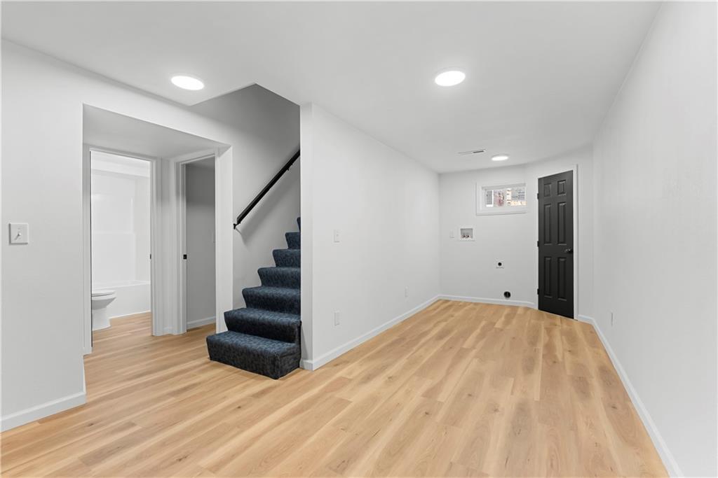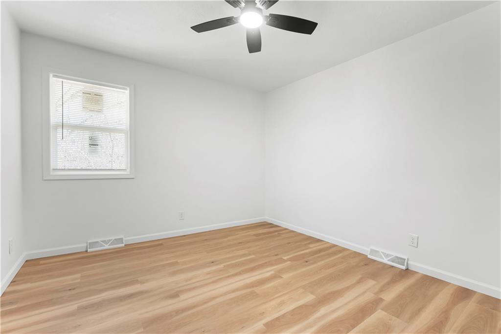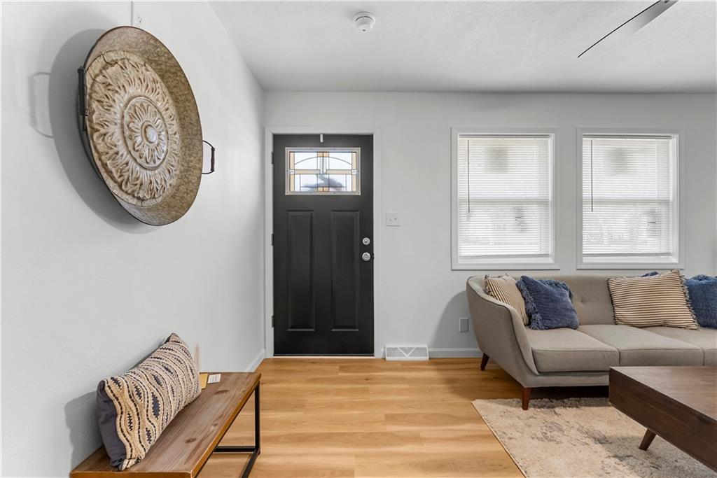 This 4-bedroom, 2-bath raised ranch is move-in ready with major updates already completed. The home features a new roof, new HVAC system, and a fully renovated interior including new kitchen cabinets, updated bathrooms, fresh paint, and modern finishes throughout. The main level includes the primary bedroom, while the finished basement adds a fourth bedroom, full bathroom, and laundry area. Outdoor living includes a front entry deck and a rear deck with stairs leading to the backyard. A one-car garage is located in the basement, with additional parking available at the rear of the property. Located next to Henry C. Kritser Park, near Rock Island Trail access, Scooters Coffee, Dutch Bros Coffee, and Route 350 W for convenient commuting.