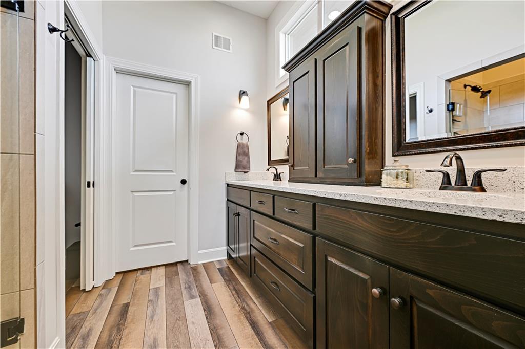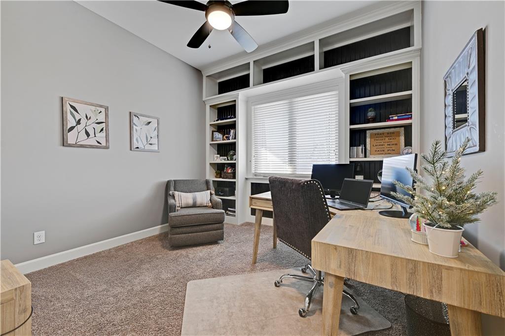 Welcome home to this Gabriel Homes Richmond floorplan free-standing villa in Cedar Creek – The Meadows, featuring new interior paint throughout much of the home. This low-maintenance stucco and stone exterior welcomes you with a deep covered front porch and upgraded leaded-glass front door. The main level offers mixed-width hardwood floors, a spacious office or 4th bedroom with built-ins, and a full bath with tiled shower and granite vanity. The kitchen shines with a large walk-in pantry, expanded island, granite countertops, custom painted cabinetry with under-cabinet lighting, and stainless appliances including a KitchenAid induction cooktop and Bosch oven and dishwasher. The adjoining living room features a stacked-stone gas fireplace. The main-floor primary suite includes a tray ceiling, a huge walk-in closet connected to the laundry room, and a spa-like bath with double quartz vanity and tiled walk-in shower. The finished basement offers a wet bar, large living area, two generous bedrooms, and a full bath. Enjoy a private backyard backing to a school with a covered patio, expanded paver patio, and lush perennial landscaping. Deep painted garage is EV-wired. HOA includes lawn care and snow removal. Resort-style Cedar Creek amenities include pools, pickleball, trails, lake, gym, clubhouse, and more—an exceptional value.