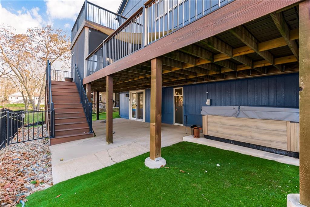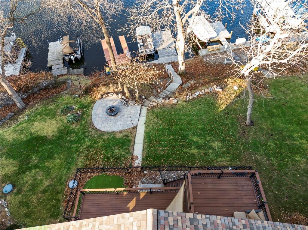 Experience lakefront living at its finest in the beautifully updated home located in a highly desirable family community served by Blue Springs A+ Schools. This property offers breathtaking lake views, abundant natural light, and thoughtful upgrades throughout the home including the most big ticket items updated. The main level features soaring ceilings, plenty of windows, and a spacious kitchen designed for both function and style. Highlights include a large walkin pantry which most homes in this area do not have, extensive cabinetry, and a central island overlooking the dining area and the lake-perfect for everyday living and entertaining. Laundry rooms are conveniently located on main level and bedroom level. The luxurious master suite spans the entire lakeside of the second floor, showcasing spectacular water views. The private retreat includes a sitting area, fireplace, a large walk-in closet, an updated en-suite bathroom, and it's own private deck. Each additional bedroom includes direct access to a bathroom, offering comfort and privacy for everyone The recently remodeled basement level adds valuable living space, while outdoor living truly shines with a covered patio, multiple decks, a new Trex deck, & added patio space with fenced in backyard. Enjoy direct lake access with a private dock, ideal for swimming, fishing, and relaxing while taking in stunning sunrises and sunsets. Sellers have also a nice pontoon boat that's been approved and ready to use on the lake for sale that can be purchased. Additional updates include a newer HVAC system and hot water tank just a few years old. This home features 4 bedrooms, 4.5 bathrooms and an unbeatable lakefront lifestyle. Also offering rare extra parking that most lake homes in this area don't have. Tax record shows this home being built in 1936 but that’s only a small spot of the basement that is original because the rest of the house was built from the ground up in 2006. Hurry quicky.