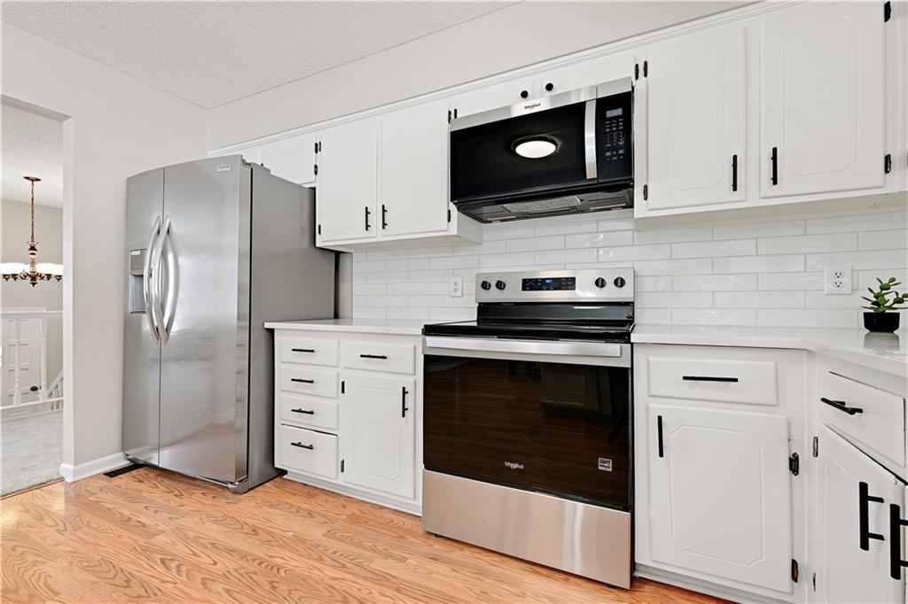 NEW ROOF COMING SOON! Spacious home on a large lot in Bonner Springs! This 3-bedroom, 2.5-bath property offers a 2-car garage and numerous updates throughout. Enjoy fresh interior paint and brand-new carpet, along with updated quartz countertops, and a stylish backsplash in the kitchen. New range and microwave included. The large living room features a large window that fills the space with natural light. The finished lower level adds extra living space with a convenient half bath. Step outside to a patio just off the kitchen, perfect for entertaining, plus a shed in the backyard for additional storage. A great combination of space, updates, and functionality. Don’t miss this one!