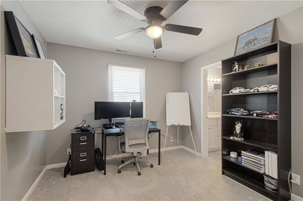 Welcome to a truly one-of-a-kind home that instantly feels warm, open, and inviting. As you step inside, soaring ceilings and a flowing open floor plan create a light-filled space that’s perfect for both everyday living and memorable gatherings. The front windows frame stunning Downtown skyline views and deliver some of the most beautiful sunsets you’ll enjoy from the comfort of your own living room. With two spacious living areas, there’s room to relax, unwind, or entertain with ease. The vaulted living room sets the tone, while the second family room offers a cozy fireplace with built in bookshelves and plenty of natural daylight, ideal for quiet evenings snuggling up with a book. The kitchen is both functional and welcoming, featuring abundant cabinetry and a sunny breakfast nook where mornings feel easy and unhurried. The generous primary suite is a peaceful retreat with a huge walk-in closet and a private bath complete with a jetted tub and separate shower while the other 2 Bedrooms have direct bathroom access to the Jack-n-Jill bathroom. Downstairs, a 28x18 finishable sub-basement space offers endless possibilities, while the garage which could double as an indoor basketball court with 14-foot ceilings, adds a fun and unique touch you won’t find anywhere else. The spacious backyard provides a great spot for pets, play or outdoor relaxation with the newly constructed privacy fence. Ideally located with quick access to I-435 and I-35, this home blends comfort, character, and convenience in a way that’s truly special. HOMEBUYER SPECIAL: Sellers are offering new carpet to be installed prior to closing; carpet samples are available at the home for buyer selection.