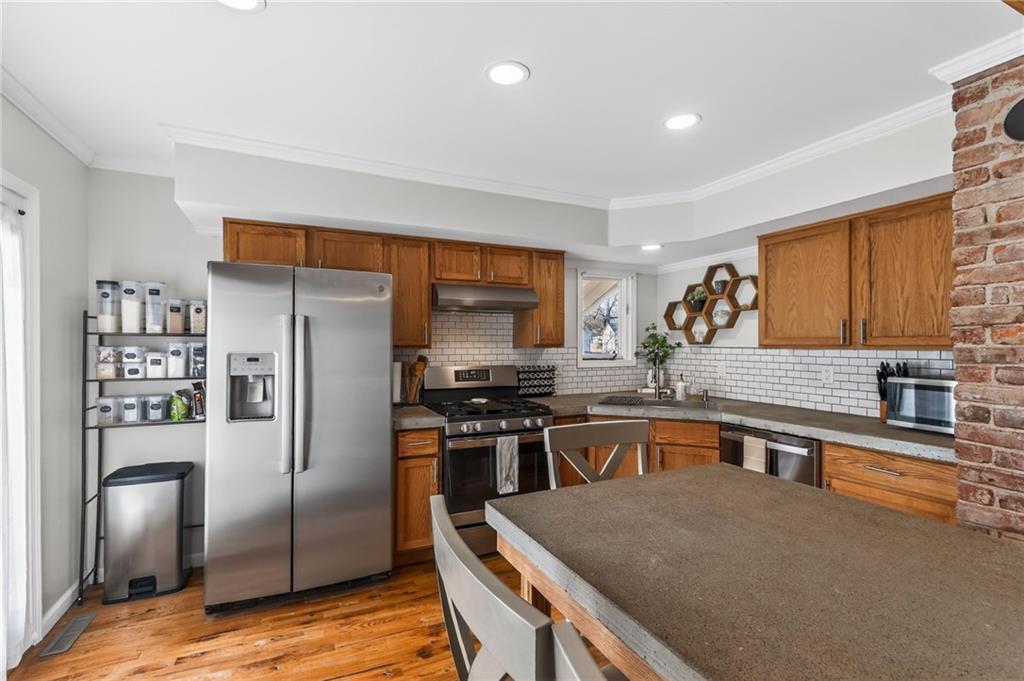 This is the kind of home that immediately feels welcoming, the kind that invites you to slow down and imagine everyday life unfolding comfortably within its walls. Built in 1922, this beautifully maintained residence blends timeless craftsmanship with thoughtful updates that make modern living easy. The front porch sets the tone, offering a perfect place for morning coffee or evening conversation. Inside, natural light fills the main living spaces, highlighting original details and warm finishes that give the home its character. The living room centers around a fireplace that anchors the space, creating a cozy gathering spot for family and friends. The kitchen is spacious and functional, offering generous counter space, classic cabinetry, and room to truly cook and connect. Adjacent dining and gathering areas flow naturally, making everyday living and entertaining feel effortless. With three bedrooms, including a main-floor primary, the layout offers flexibility for families, guests, or home office needs. The partial finished basement adds valuable bonus space, ideal for a family room, game room, or quiet retreat, along with an additional office or non-conforming bedroom option. Outdoor living is just as inviting, with a covered porch and side deck creating multiple spaces to relax or entertain. A detached two-car garage adds convenience while preserving the home’s charm. Located just minutes from Benedictine College and downtown Atchison, this home offers character, comfort, and walkable access to local dining, shopping, and campus life. It’s a home best appreciated in person, where its warmth and livability truly come to life.