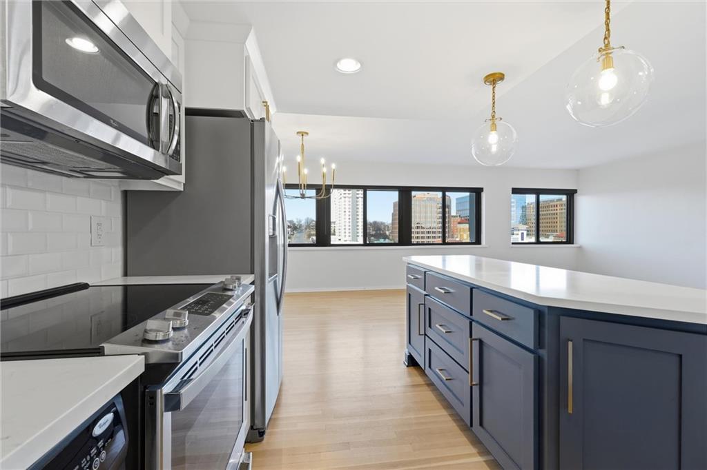 Plaza living meets timeless elegance in this beautifully renovated 2-bedroom condo on the 11th floor at The Winston Churchill. A wall of windows in the main living area provides abundant natural light and stunning views. Cooking is a delight in the thoughtfully updated kitchen featuring quartz countertops and a welcoming island that opens to the family room and dining area. Whether you're watching a game or hosting a dinner party, you'll feel comfortably at home surrounded by high end finishes and luxurious materials. Relax in the spacious primary bedroom while enjoying a picture-perfect view of the iconic Plaza lights. When the holidays are over, the view continues to give stunning sunrise scenes to enjoy year round. An additional bedroom, smartly renovated bathroom and in-unit washer and dryer round out the space. The Churchill stands out as a secure, well-managed building that offers a quiet retreat in the heart of the Country Club Plaza. Enjoy the convenience of an onsite gym, underground parking and a private party room with a fabulous rooftop deck that is the perfect spot to host parties. Exciting things are happening on the Plaza. Now is the time to embrace the ease of lock and leave living in what is, and will always be, the jewel of Kansas City.
