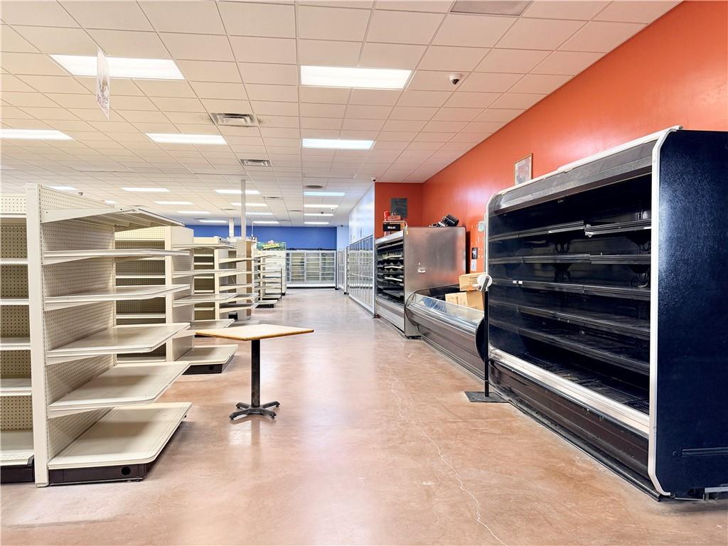 Versatile Commercial Building in the Heart of Jamesport, MO! Exceptional opportunity to own a well-maintained 9,626± square foot commercial building, constructed in 2012, located in the charming and progressive rural community of Jamesport, Missouri. Previously operated as a grocery store, this property offers outstanding infrastructure suitable for a wide range of commercial uses. The building features concrete floor throughout, and durable metal siding accented with an attractive stone façade, creating excellent curb appeal. Inside, the layout includes a spacious retail area, two bathrooms, a dedicated office, breakroom, and a backroom storage area designed for efficient operations. The property is equipped with 3-phase power, a fully functional HVAC system, and existing coolers and freezer units that operate off a central refrigeration system—an ideal setup for food service, retail, or cold storage uses. A new Conklin coating roof installed in May 2025 comes with a transferable warranty, offering long-term peace of mind. Additional highlights include a rear loading dock with overhead door, two double-entry storefront doors, each with covered concrete patio areas, and a 16-camera security system with audio and video monitoring. The site sits on just under one acre, providing ample parking with concrete across the storefront and additional gravel parking. Location is key, surrounded by a community center to one side and downtown retail businesses on the other side, being central for all the local happenings. This well-equipped commercial property combines functionality, visibility, and flexibility in a growing community—an excellent investment or owner-operator opportunity.