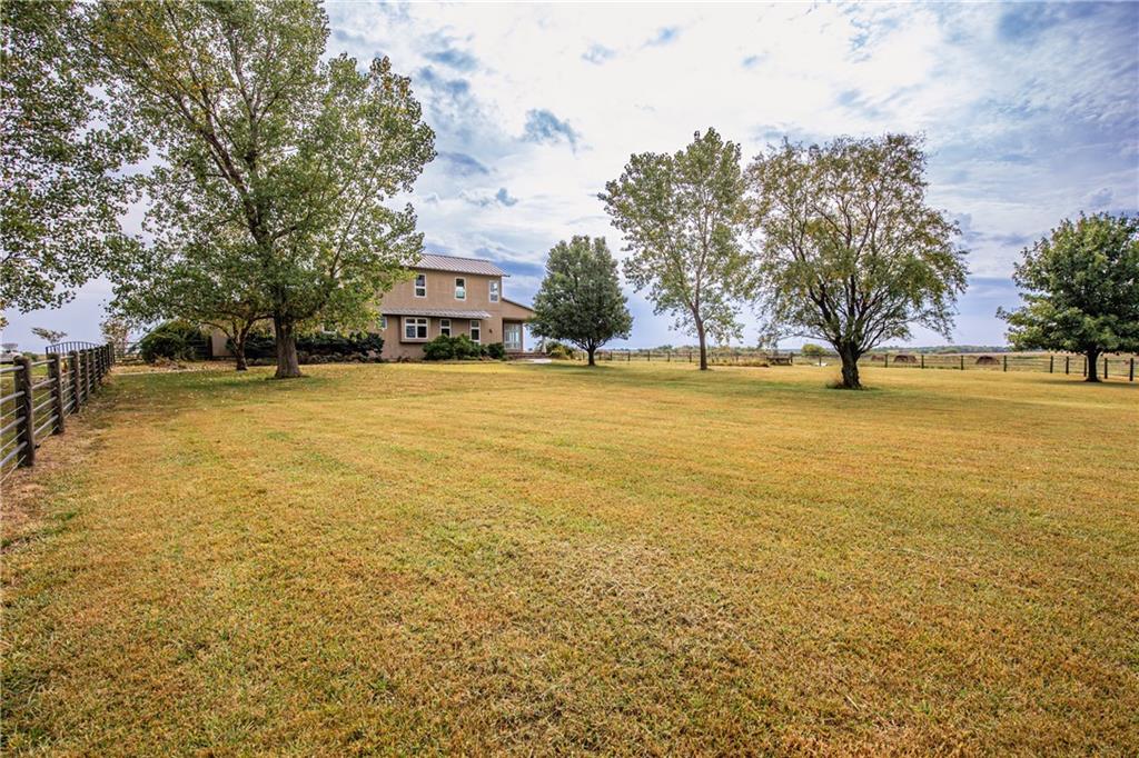 Sitting at the end of a nearly half mile driveway is this unique, 2985 square foot, 3 bedroom, 2 bath, 1 story home on 100 acres, more or less, in Anderson County, KS. Youll find an open floor plan which includes a huge master suite wing that is connected to the main body of the home by way of a large office which could be used a library, home school room or family room. Off that suite is your own private sunroom in which you will enjoy picturesque views of the countryside and neighboring lake. The main body of the home is wide open with the kitchen, dining and family rooms designed for easy communication and entertaining! The upstairs includes two large bedrooms with a large bathroom. Youll love the hard wood floors throughout and everywhere you look there are windows, lots of windows. Natural light flows in abundance. The home sits on a full unfinished basement ready for your finishing touches or storage. There is a nice 60 x 60 metal horse barn and a nice 30 x 40 metal detached garage/shop! The map is for general reference only and may not reflect exact locations or dimensions. Taxes TBD. Aerial map, created with Surety Pro paid subscription & used with permission from AgriData, Inc. The map is for general reference only and may not reflect exact locations or dimensions.