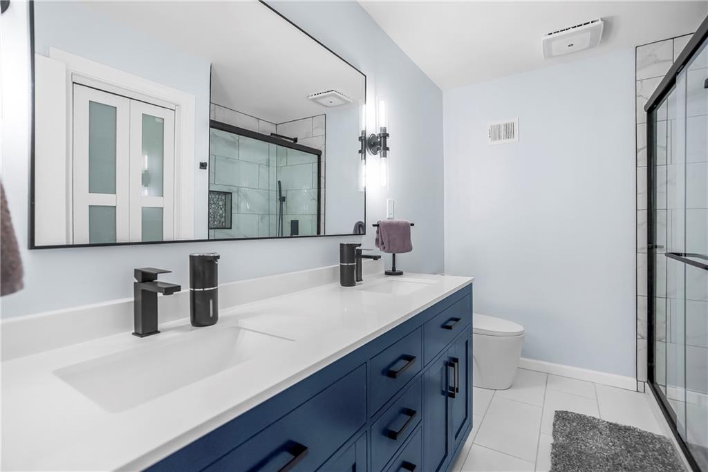 Prime Overland Park for this beautifully remodeled ranch home in the award-winning Shawnee Mission East School District. This home offers almost 3,000 sq. ft. of main level living space, and every detail has been thoughtfully renovated. As you step inside, you're greeted by a spacious open-concept living/dining room featuring refinished hardwood floors, black ceiling beams, & dual sliding doors that open to a large concrete patio – perfect for indoor-outdoor entertaining. The remodeled kitchen boasts: A large center island, stainless steel appliances, including an induction range with air fryer, Soft-close hardwood cabinetry, Stunning quartz countertops, A see-through fireplace connecting the kitchen and dining area. This true ranch offers 4 generously sized bedrooms including primary all on main level, each with its own fully remodeled en-suite full bathroom featuring: Modern vanities, ceramic tile flooring & showers, Updated toilets & plumbing fixtures, Stylish light fixtures & black hardware. Additional main-level features include: A main level family/rec room (Could convert to 5th bedroom), main-level laundry, New solid core interior doors throughout, new carpet, new interior paint, unfinished walkout basement offers incredible potential for a future bedroom, home gym, or additional living space complete with a fireplace. Exterior highlights include: Oversized 2-car garage, Circular front driveway + 2 additional double car driveways, New HVAC system w/ 10 year warranty, New water softener & water conditioner system, Water Heater ( 3 years old), New 6-inch seamless gutters, newer plumbing lines (sewer & water), New windows in bedrooms & kitchen, Spacious patio w/ access from primary bedroom, living room, & kitchen, This home could also be great multi-generational family, plus near shopping, restaurants, freeways & lots of entertainment.