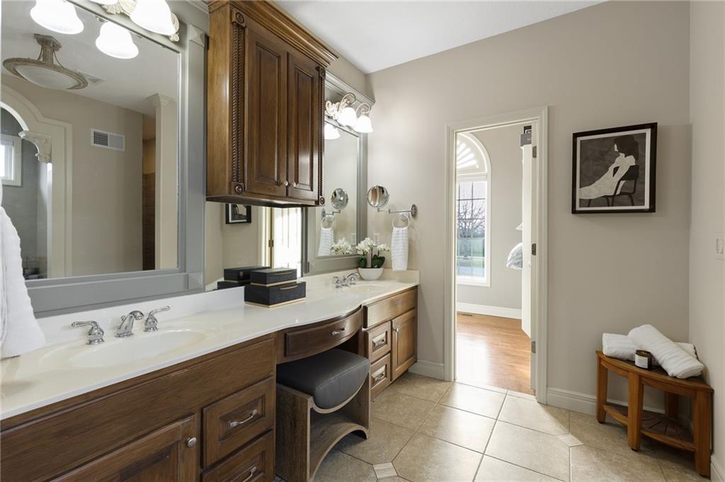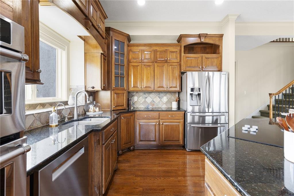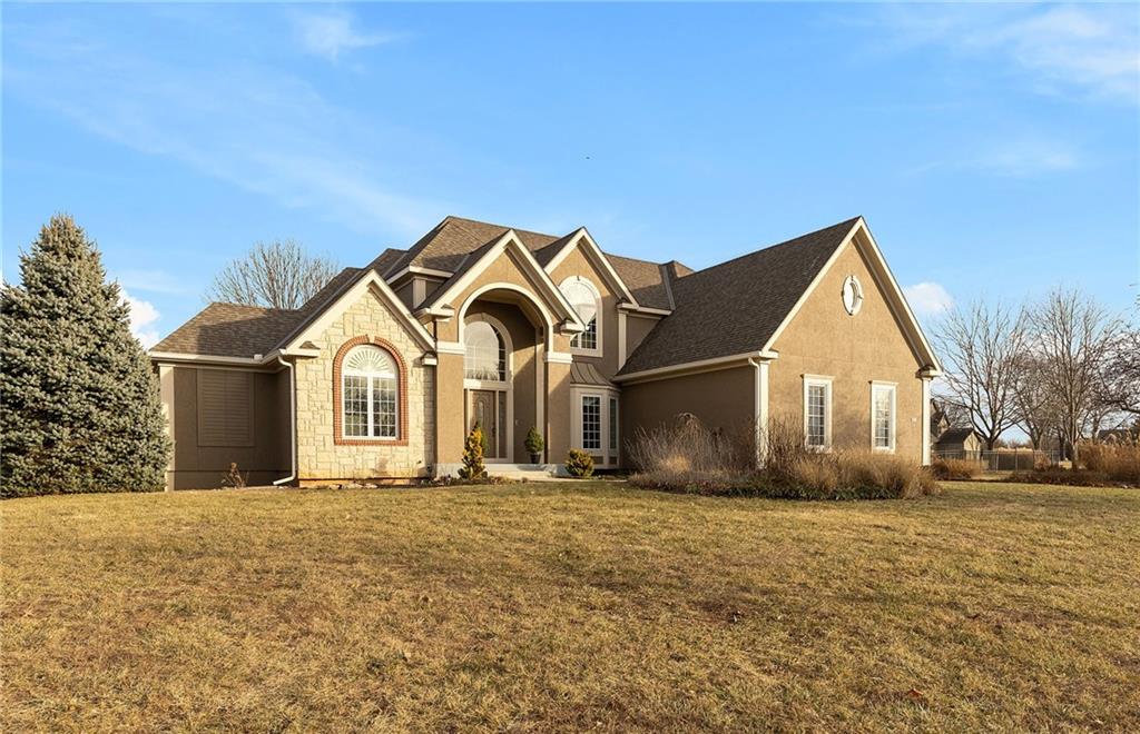 Classic country living meets refined craftmanship in this spacious, meticulously maintained 5-bedroom, 4.1 bath custom-built home, nestled on a private, fenced lot just under two acres. The all-stucco exterior with stone accents offers timeless curb appeal, complemented by an oversized 3-car side-entry garage. Inside, you'll find pristine hardwood floors, tiled bathrooms, and thoughtfully designed living spaces. The gourmet kitchen features premium wood cabinetry, granite countertops, and a large island-perfect for entertaining. Cozy up in the inviting hearth room or the living room, both showcasing stunning stone and paver-brick fireplaces. The finished walk-up lower level provides exceptional versatility with a spacious recreation room, wet bar, fifth bedroom, access to the private outdoor patio, and abundant storage. A 26X36 detached garage adds even more parking and storage options. Offering a first-class lifestyle in the serene setting of Southern Johnson County, this exceptional home combines privacy, comfort and quality craftmanship.
