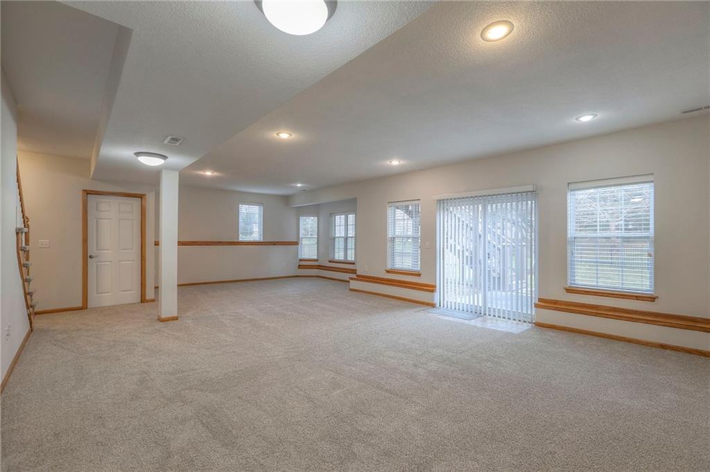 Meticulously maintained and move in ready! True ranch with 3 bedrooms on the main level in sought-after Drumm Farm Villas! NEW furnace and AC! Fresh interior paint and new carpet throughout! Enjoy the largest fully fenced yard in the neighborhood! Kitchen offers double oven, stainless appliances, walk in pantry and breakfast bar. Dining area opens to the Great room with gas fireplace and access to the deck overlooking the fenced backyard with inground sprinkler system-perfect for relaxing and entertaining! Primary bedroom suite includes a walk in closet and private bath with double vanity, jetted tub and shower. Two additional bedrooms, 2nd full bath with tub/shower and laundry are also on the main level. Finished, walk out lower level includes spacious family room with wall of windows, 3rd full bath and ample storage! Located in a maintenance-provided community, HOA dues cover lawn care, snow removal, opening/closing of sprinkler system and trash service—offering low-maintenance living at its finest. The Drumm Farms public golf course is also just down the road!
