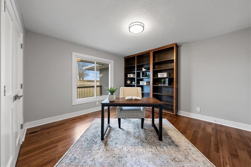 A rare opportunity for acreage living, this fully remodeled 3,017 sq ft ranch with a finished walkout basement is set on 10 acres. The home offers 4 bedrooms, 3.5 baths, and a flexible main-level office or fourth bedroom, thoughtfully updated to blend modern comfort with timeless ranch design. At the heart of the home is an all-new kitchen featuring abundant cabinetry, quartz countertop surfaces, and brand-new appliances—designed for both everyday living and entertaining. New bathrooms, all new windows, doors, flooring, HVAC System, Electrical Box and wiring, Siding, Exterior and Interior paint and all-new fixtures throughout reflect the home’s comprehensive renovation and elevated finish. Everyday functionality shines with an expansive mudroom and main-level laundry, along with a walk-in pantry complete with a convenient grocery door to the garage. The finished walkout basement extends the home’s versatility, offering a wet bar, professional epoxy flooring, and a striking glass-and-tile walk-in shower—ideal for hosting, relaxation, or extended living. The 2.5-car side-entry garage has new epoxy floors, providing durability with a polished look. Outdoor living is enhanced by a large new deck and expansive concrete patio overlooking the peaceful, open acreage. Additional amenities include a 40x60 outbuilding with electricity and a convenient lean-to, perfect for equipment, animals or additional storage. Paved road access—no gravel. The buyer receives first right to purchase the adjoining 8 acres, offering potential for added privacy or future expansion. NO HOA. No fencing. Just space, freedom, and the opportunity to make it your own.