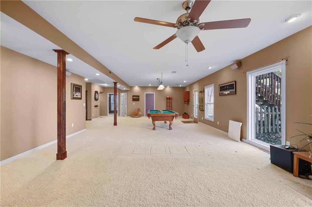 Fabulous Ranch Plan on a HUGE, Cul-de-sac Lot Backing to Green Space! NEW ROOF and Gutters, NEW HVAC, 3 Full Bathrooms, 5 Bedrooms one basement bedroom was used as office, Beautifully Finished Walkout Basement with Bar Area, 2 Bedrooms/Office; Bath and 2 WORKSHOPS! There is a Garage Door to Exterior from 2nd Workshop. Pool Table Remains with Home. NEW Wood Flooring on Main Level, Living Room with Fireplace, Formal Dining and Breakfast Area. Kitchen with Pantry and all Appliances Staying. Primary Suite is Large with Beautiful Bath and Walk-In Closet. 3 Car Garage. Laundry on Main Floor. Don't Miss This Great Home! Call for a Private Showing!
