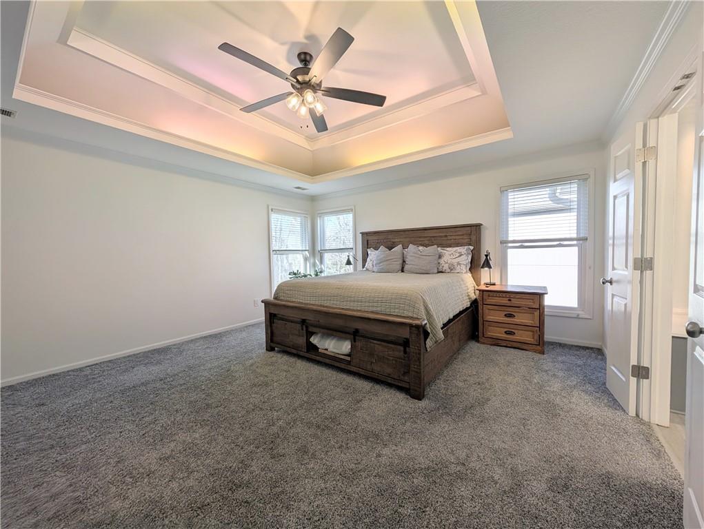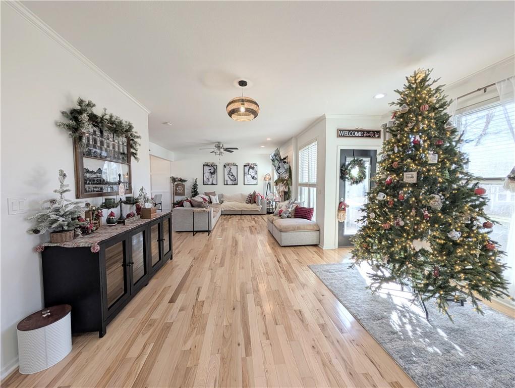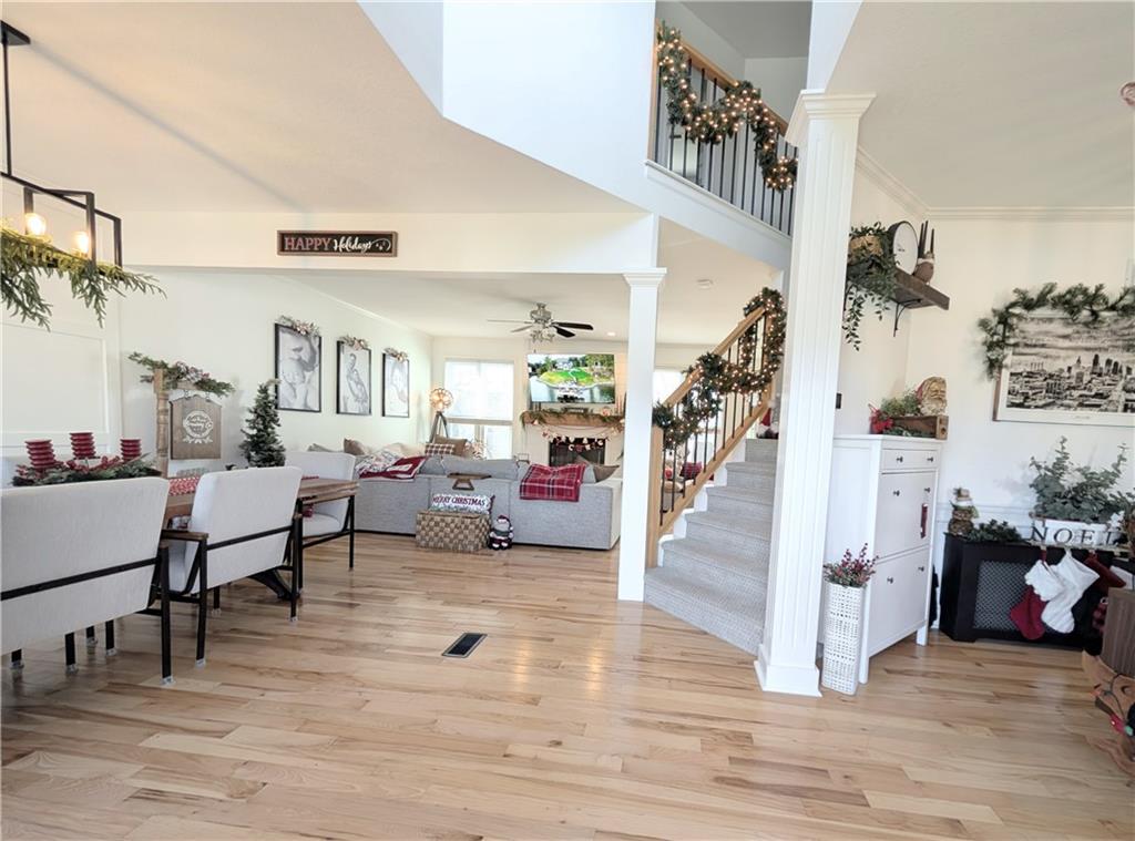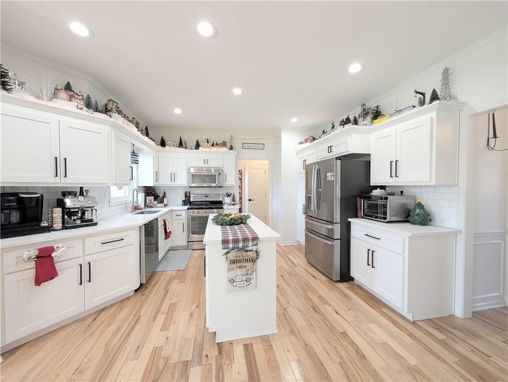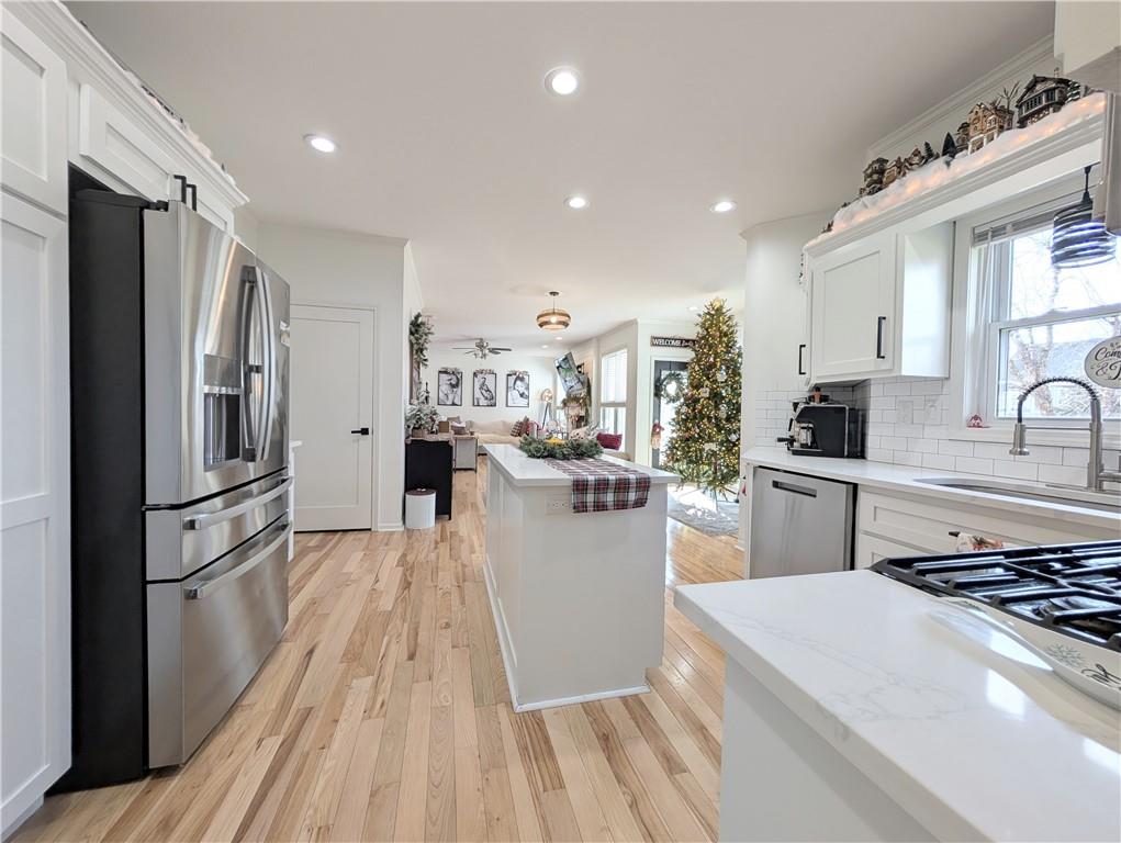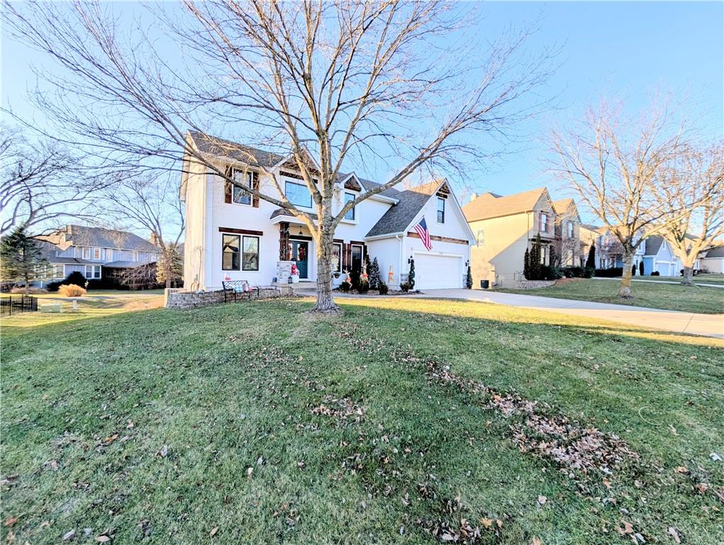 Experience a perfect blend of modern sophistication and neighborhood charm in this meticulously updated two-story located in the heart of Lee’s Summit’s highly sought-after Longview Farms neighborhood. The main level with mixed neutral toned plank hardwood floors throughout, has been thoughtfully reimagined into an open-concept sanctuary, where natural light fills the living spaces and flows seamlessly into a gourmet kitchen outfitted with custom cabinetry, sleek countertops, and designer finishes. High-end architectural details abound throughout the home. Beyond the aesthetic transformations, this home offers total peace of mind with major mechanical systems and roof all replaced within the last six years: including Furnace & AC & tankless water heater. The outdoor living space is a private retreat, featuring a low-maintenance composite deck and a charming covered porch that overlook a serene backyard complete with a picturesque dry riverbed boarding the paved neighborhood trail. The finished WALKOUT basement is so flexible, with large open space, tons of light, stained concrete floors, complete with a FULL bath, a walk-up wet bar, and generous storage. This is a rare opportunity to own a turn-key, masterfully refreshed home that balances style, function, and a premier location. **Basement bath shower roughed-in & ready to be finished. Tile already purchased and ready to instal. Bathroom door shipping delay, ETA 1/18.