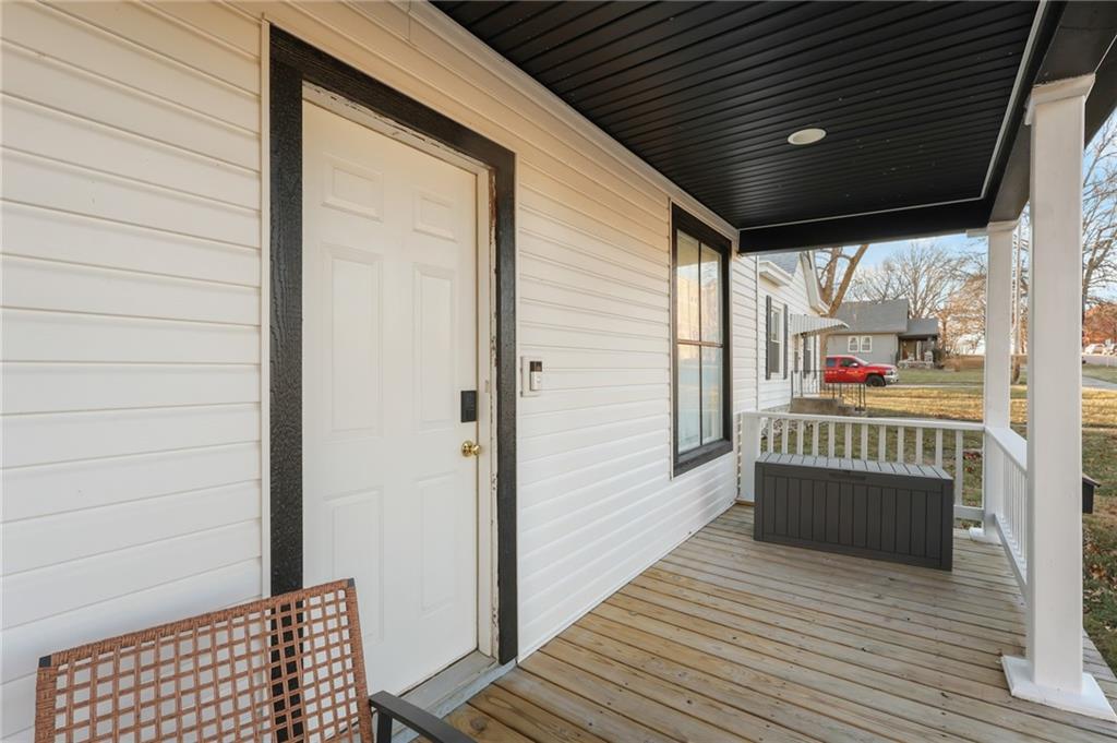 Stop by and see 103 East Shawnee Today! This beautifully renovated 2-bedroom, 1 bathroom home offers over 1,000 square feet of thoughtfully designed living space in one of Paola's desirable locations, just a short walk to the iconic Paola Square. Move-in ready with fully furnished appliances including fridge, microwave, dishwasher, stove, and washer / dryer! Inside, you'll love the open-concept layout paired with tasteful, modern design choices throughout. The renovation included all the mechanicals (electric, HVAC, plumbing), providing peace of mind and efficiency for years to come. The kitchen is both charming and functional, featuring ample storage and convenient laundry location, just off the kitchen. A visually striking fireplace anchors the main living space, adding warmth and character. Outside, enjoy a large backyard with a detached garage, offering extra storage and flexibility. Super cute, move-in ready, and an amazing location! This home is perfect for buyers looking for charm, updates, and walkability in the heart of Paola, KS.