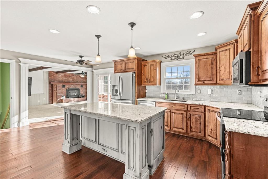 This Brick Ranch Has 5 Bedrooms, 2 of Which Are Non-Conforming in Basement. 4 Full Remodeled Bathrooms, 3 on Main Floor and 1 in the Basement. New Electric HVAC Heatpump. Newer Anderson Windows. 4 Car Garage, 2 on Main Level (Epoxy Floor) and 2 in The Basement-- Boasts 3,778 Square Ft Of Finished Living Space. Gorgeous Kitchen with Granite Countertops, Stained Cabinets, Pantry, and Island. Kitchen is Open To The Living Room with Fireplace and an Abundance of Natural Light. Sliding Glass Door Opens Up to Your Spacious Back Patio and Fenced in Yard. The Main Floor also has Another Family Room and an Office. The Basement has The 4th Bathroom, 2 Non-conforming Bedrooms, a 2nd Living Room with Fireplace, and a 2nd Kitchen. In Short, Your WHOLE Family Should Fit Here!! Being Sold AS-IS.