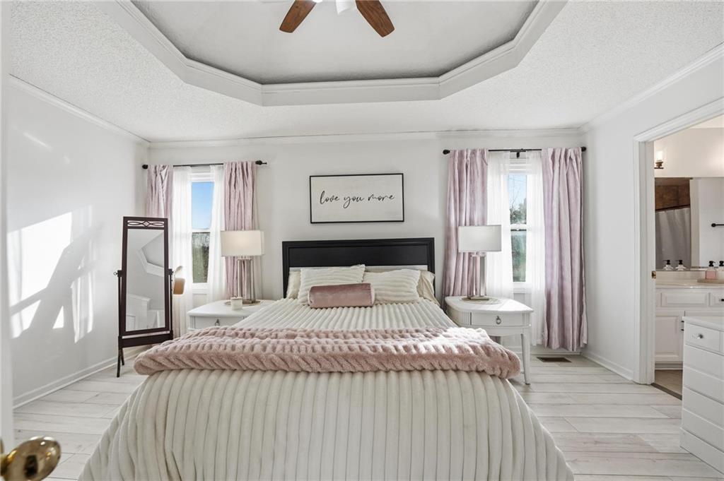 Nestled in cul-de-sac, this classy home is sure to draw you in. Established neighborhood in Blue Springs School District with many updates and room for everyone! Main level with 2 areas for company/family - family room with separate fireplace and living room with updated kitchen and dining areas nestled between them. Primary suite with french doors invite you to this classy space featuring ensuite bathroom with jetted tub, separate shower and dual vanities. 3 skylights help flood the home with natural light. Fresh paint, flooring, hardware and more make this home move-in ready! Finished, walkout basement offers additional space for living or entertainment. Don't miss this one!